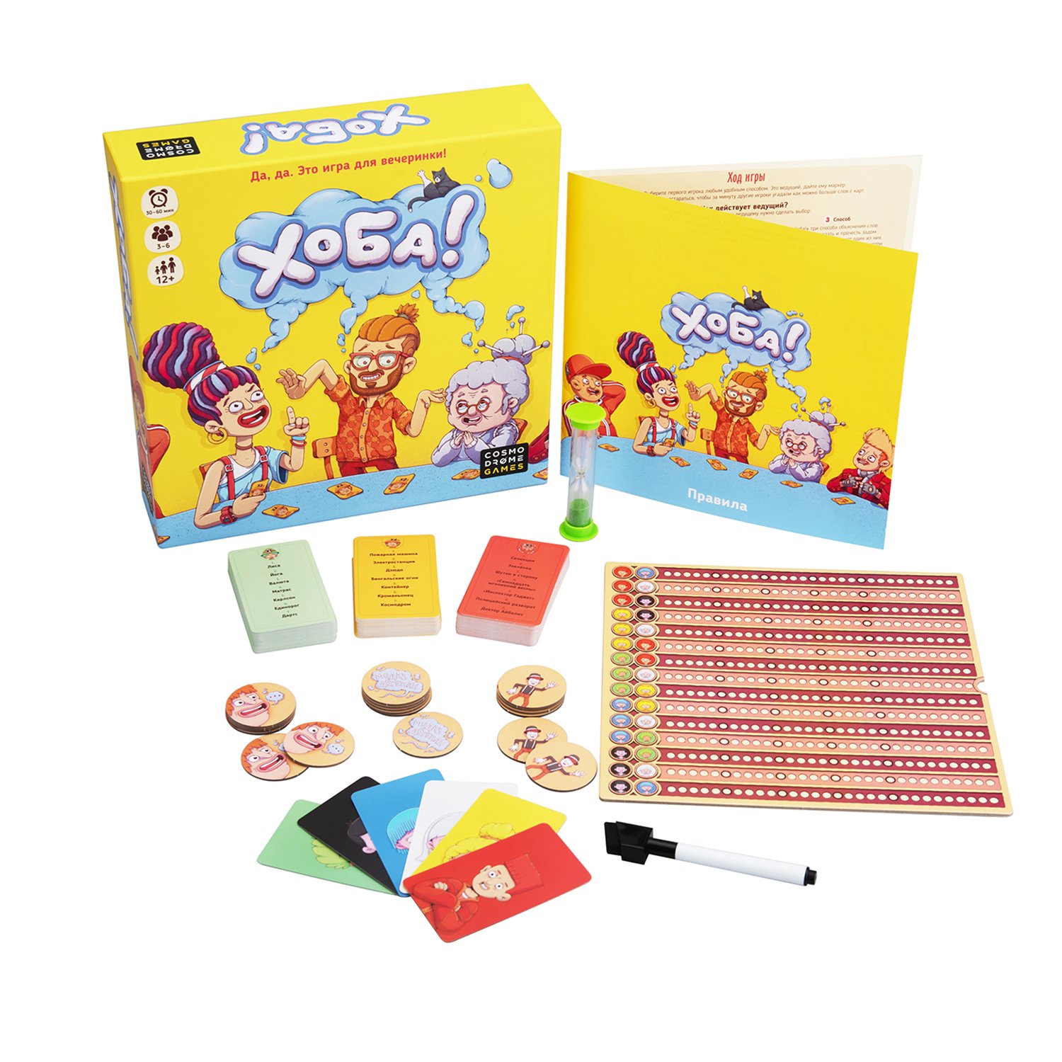 Мы готовим идеальную вечеринку, вы в деле? Все в сборе, осталось дождаться, когда подъедет настолка. А какая самая популярная игра в компании? Конечно, загадывать и показывать слова. Для тех, кто не собирается весь вечер придумывать фразы самостоятельно, выпустили игру «Хоба»! Здесь уже собраны две тысячи слов на разные темы: от еды и гаджетов, до фильмов и набора слов. Ёршик, трубадур, шредер, хохолок и вот это вот всё, остановите меня! Комплектация: Правила игры 6 картонных фигурок Песочные часы Маркер для досок Поле подсчёта победных очков 150 карт со словами Характеристики: Время игры: 30 мин Кол-во игроков: 3-6 Возраст: 12+