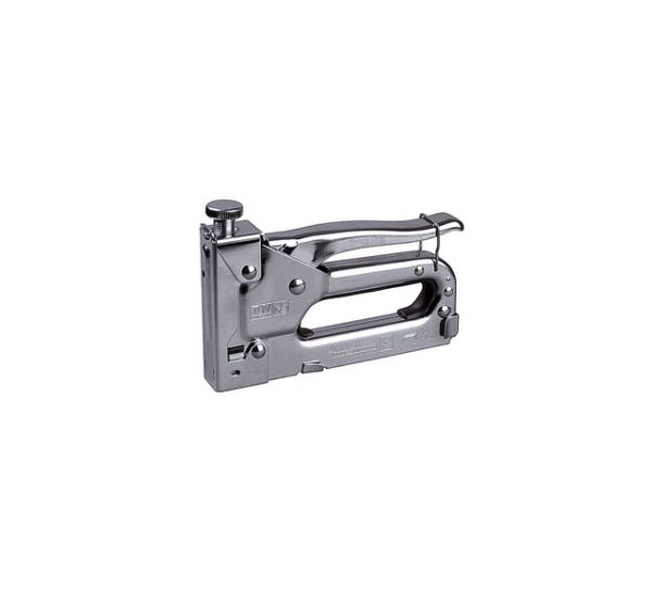 Пистолет Stayer Master скобозабивной металлический регулируемый. Тип 53. Допустимый размер скоб: 4-14 мм. Это строительный механический степлер, который используется для моментального крепления всевозможных материалов к дереву, древесноволокнистой поверхности, пластику, гипсокартону и т.д. Данный мебельный степлер оснащен высокопрочным металлическим корпусом и специальным механизмом для регуляции силы удара. Расходным материалом этого механического степлера являются скобы типа 53 (арт. 3159-хх и арт. 3160-хх).