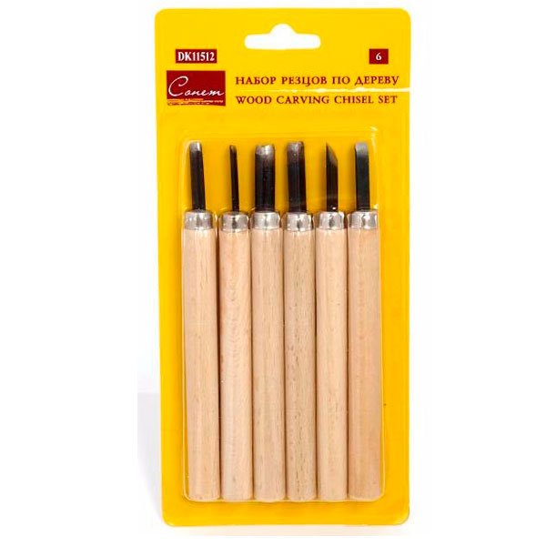 Набор резцов по дереву "Сонет" предназначен для работ по древесине мягких и твердых пород. Включает 6 специальных резцов с различной геометрией режущей кромки из закалённой стали на короткой деревянной ручке.