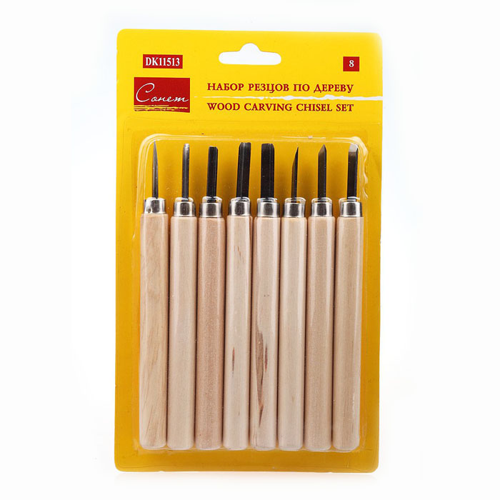 Набор резцов по дереву "Сонет" предназначен для работ по древесине мягких и твердых пород. Включает 8 специальных резцов с различной геометрией режущей кромки из закалённой стали на деревянной ручке.