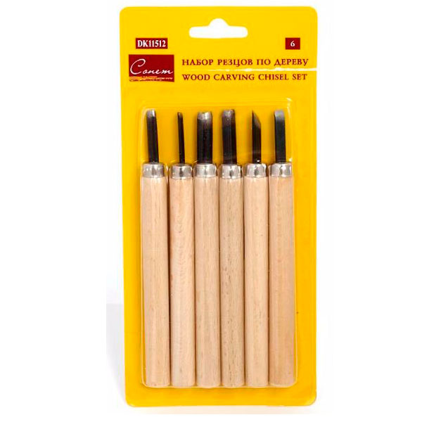 Набор резцов по дереву "Сонет" предназначен для работ по древесине мягких и твердых пород. Включает 6 специальных резцов с различной геометрией режущей кромки из закалённой стали на короткой деревянной ручке.