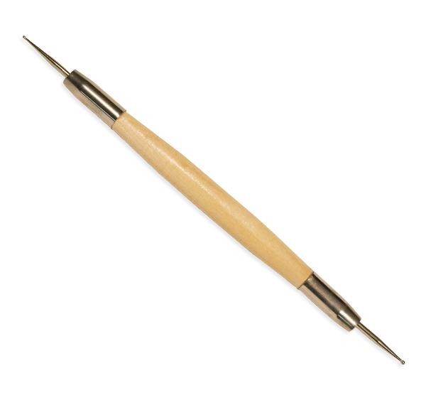 Нож скульптурный двухстороннее шило. Инструмент с шаровидным стальным наконечником и деревянной ручкой, для моделирования изделий из пластичных масс. Диаметр 0,8/1,2 мм. Длина 15 см. Материал: лезвие нержавеющая сталь, ручка деревянная.