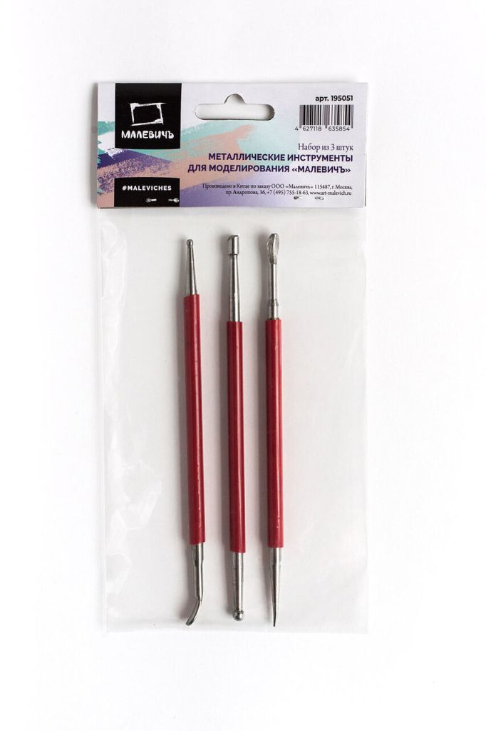 Металлические инструменты для моделирования, 3 шт. Набор металлических стеков для работы с глиной и пластилином. Три различные формы для тонкой деталлизации работы.