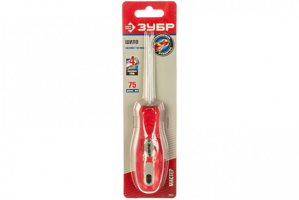 Хозяйственное шило от российского бренда "Зубр" предназначено для работ с плотными материалами. Рабочая часть шила выполнена из высококачественной углеродистой стали и устойчива к деформации. Эргономичная двухкомпонентная рукоять обеспечивает надежный хват и комфортную работу, шило не скользит и уверенно держится в руке.