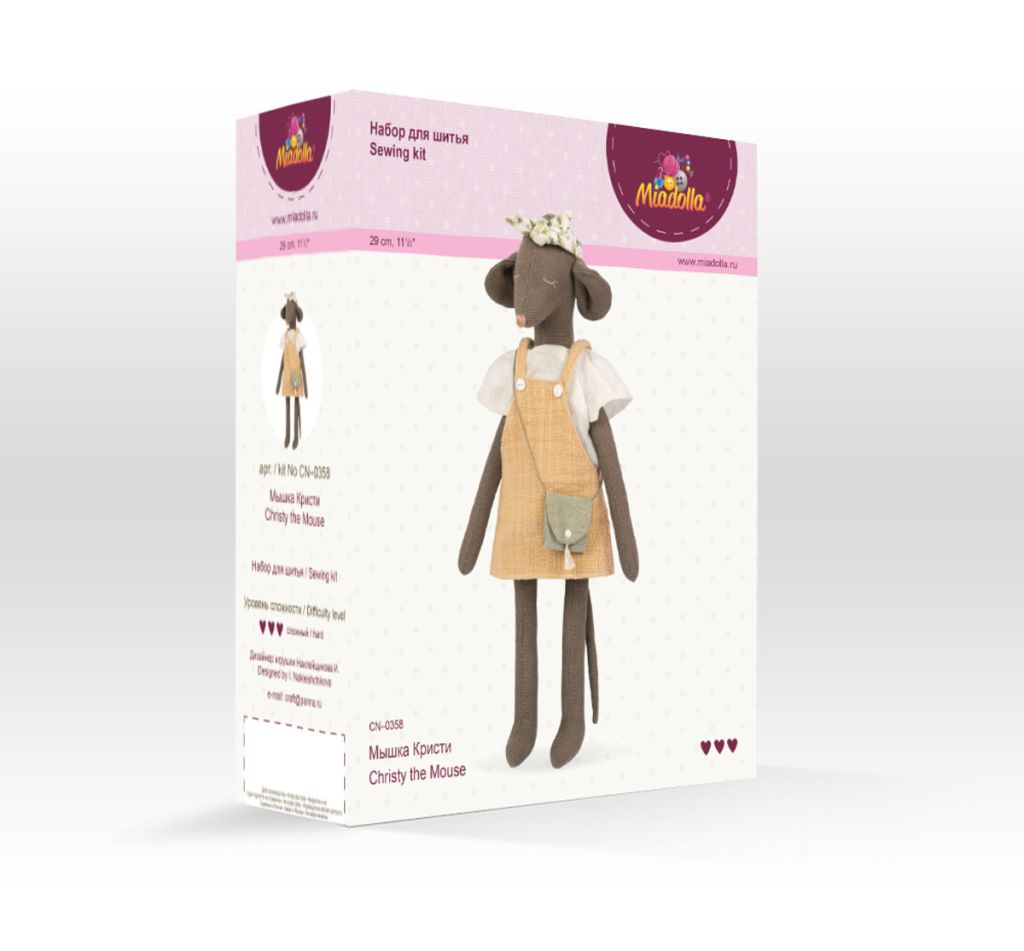 Создание мягкой игрушки своими руками — это не просто шитьё, а уникальный процесс, который придется по душе и взрослым и детям. Только представьте, вы сами создаёте то, что будет долгие годы украшать ваш интерьер или радовать ваших детей в процессе игры. Кроме того, ваша игрушка будет на 100% уникальной, потому что никто больше не повторит каждый стежок сделанный вами. В наборе есть всё самое необходимое для изготовления игрушки, вам остаётся только уделить немного времени и вложить капельку тепла и души в этот медитационный творческий процесс созидания. Состав набора: Брадсы, Выкройка, Кнопки, Лен, Нитки мулине "Gamma", Нитки швейные "Gamma", Подробная инструкция с картинками, Пуговицы, Синтепух "Gamma", Ткань 100% хлопок, Швейная игла "Gamma" Высота игрушки: 29 см.