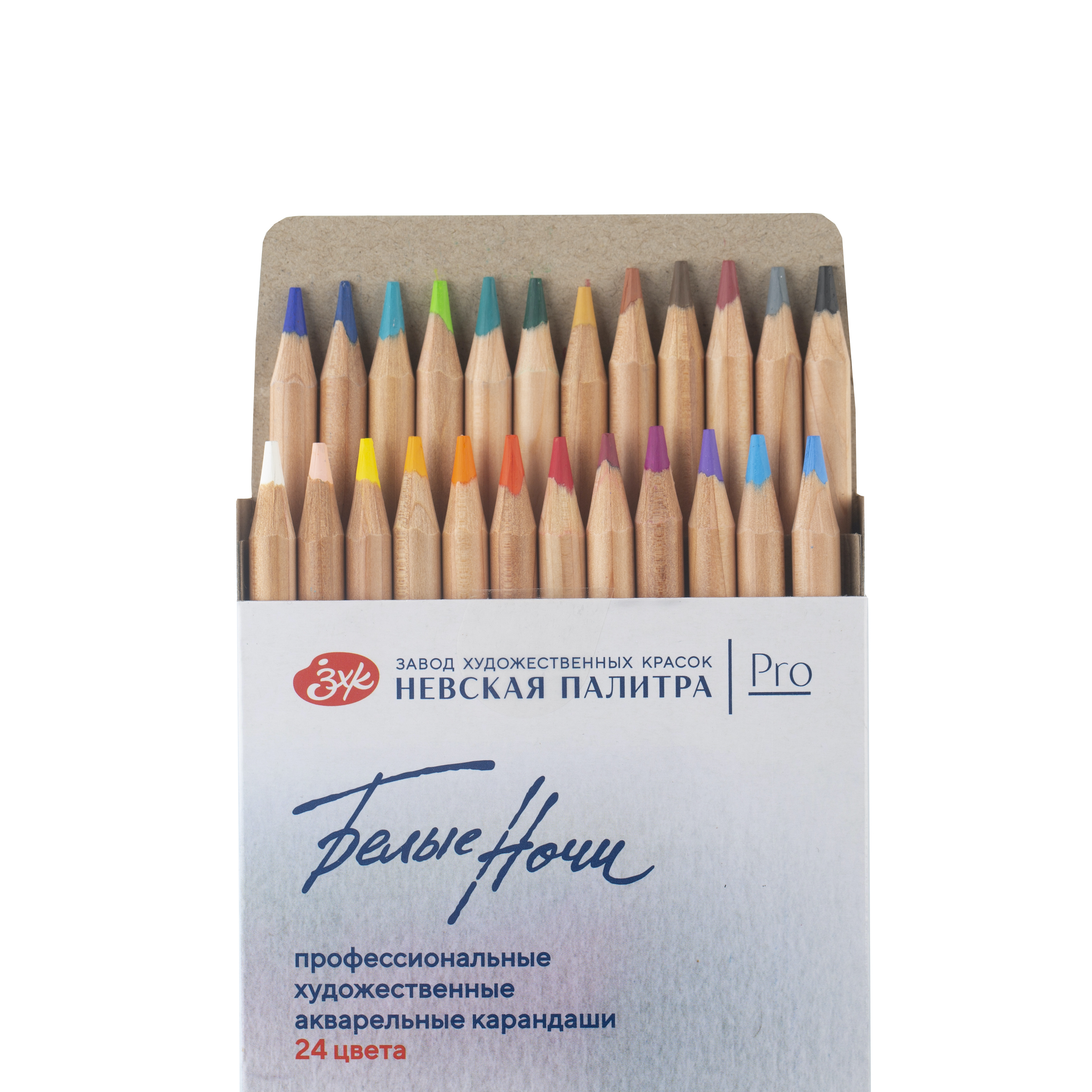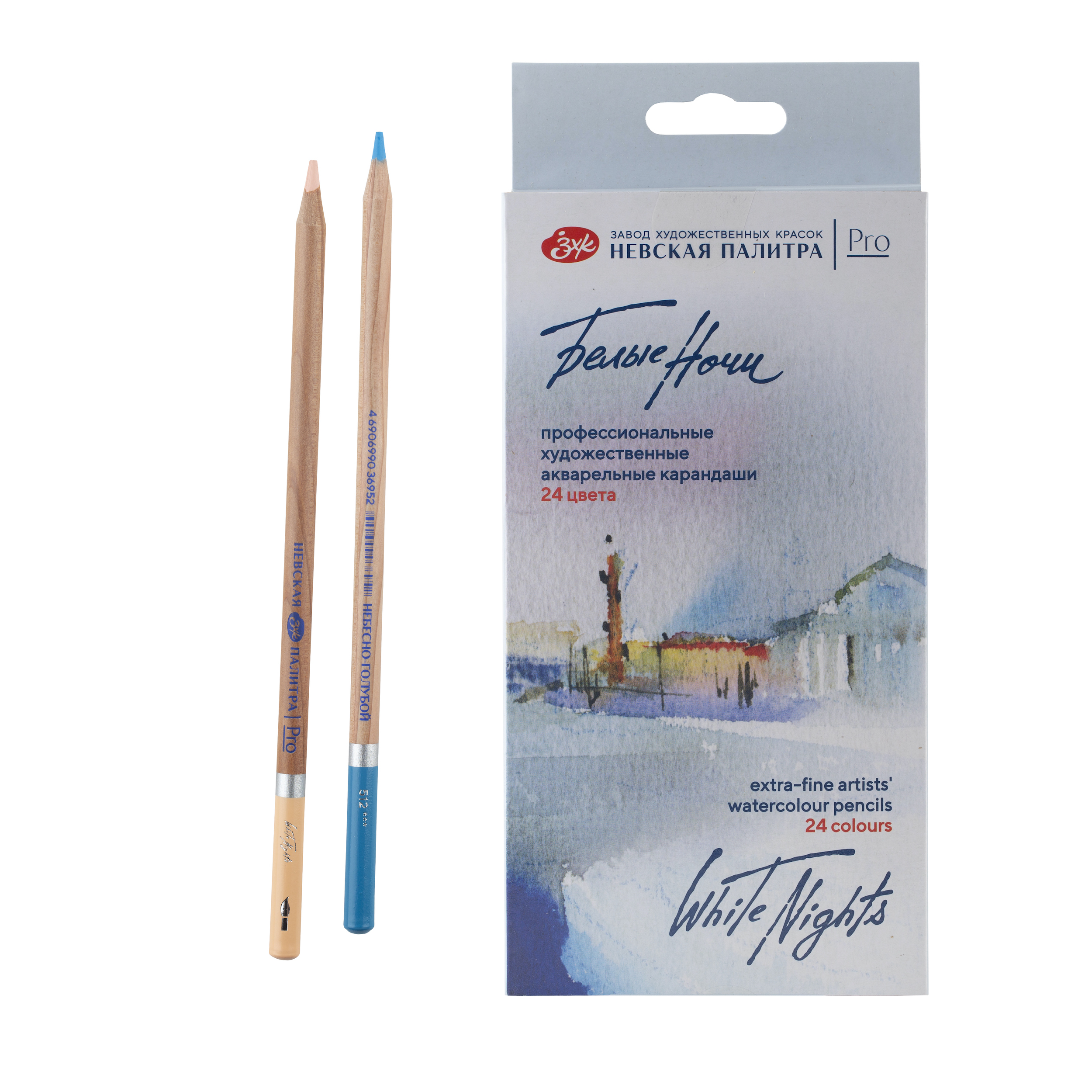 Акварельные карандаши «Белые ночи» разработаны специально для художников, дизайнеров и иллюстраторов. Совмещают преимущества цветных карандашей и акварельных красок. Позволяют добиваться графической точности и реалистичной детализации изображений, а при добавлении воды получать нежные акварельные работы. Также подходят для смешанных техник и различных эффектов. Благодаря высокой концентрации и тончайшему перетиру пигментов обладают яркими насыщенными цветами, бархатной мягкостью нанесения штриха и превосходной растворимостью. Смешение цветов как в сухом, так и во влажном состоянии дает новые чистые оттенки и плавные цветовые переходы.