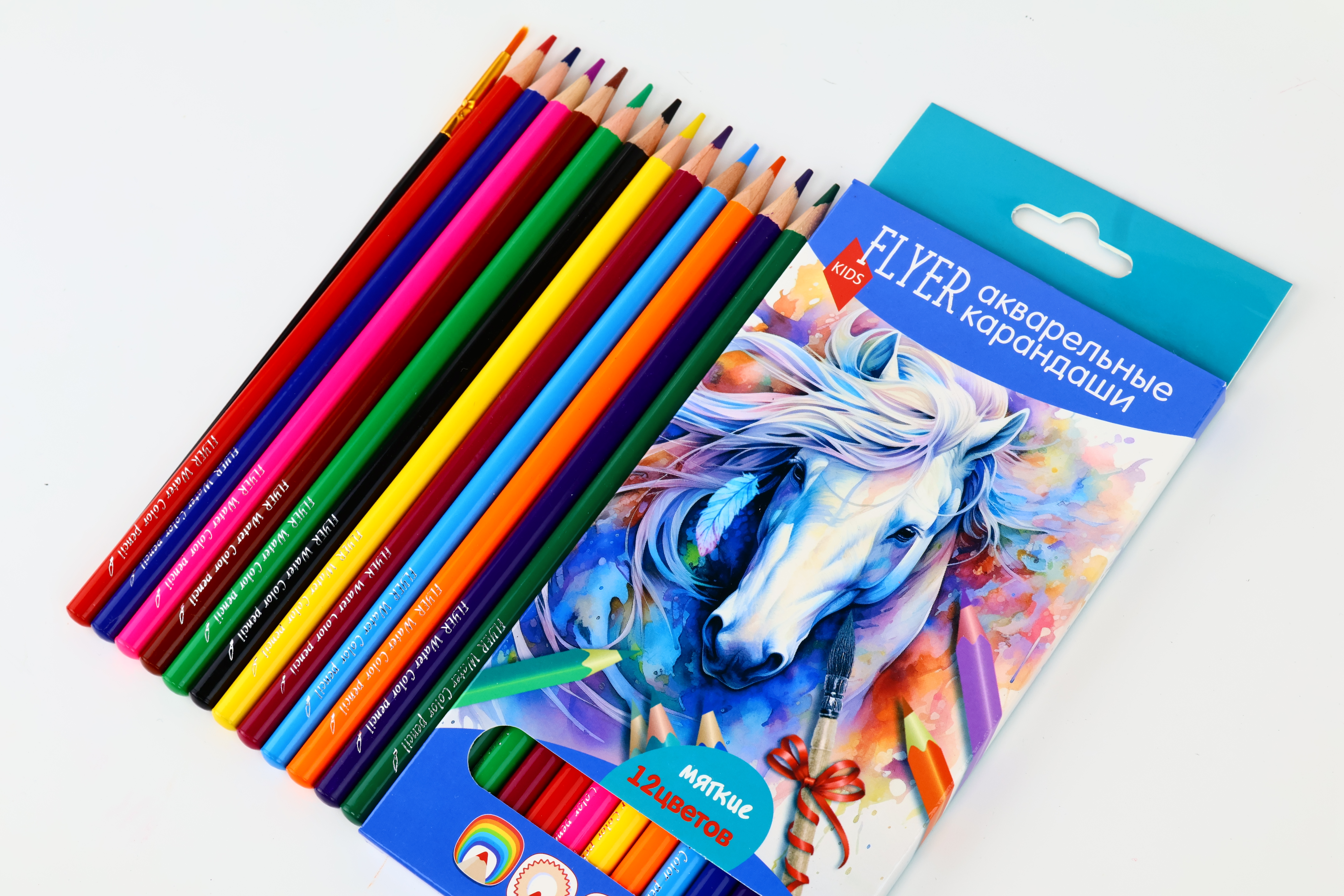 Акварельные карандаши от бренда FLYER предназначены для изобразительного творчества детей, школьников и взрослых. Отвечают требованиям безопасности, нетоксичны. Корпус карандашей сделан из натуральной мягкой древесины. Цвета карандашей насыщенные, грифель карандашей мягкий, не пылит и не крошится. Сплошная проклейка грифеля по технологии SV, обеспечивает достаточно высокую ударопрочность. Отлично подходят и для рисования в сухой технике. Мягкий грифель состоит из водорастворимого связующего и качественных пигментов, поэтому их особые свойства проявляются при размывании водой. Чистые и яркие линии превращаются в мягкие и плавные переходы, цвет становится более равномерным и гладким. Что позволяет добиваться необычных для графики акварельных эффектов. Все цвета отлично смешиваются между собой, позволяя создавать не только плавные переходы, но и новые цвета. В наборе 12 карандашей и кисть.