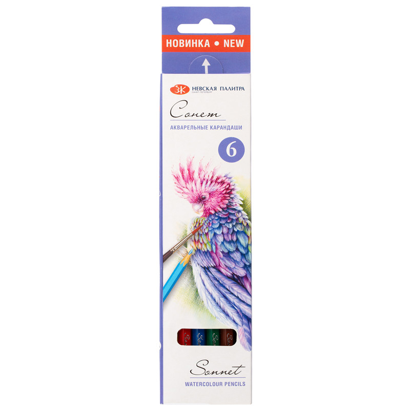 О серии: акварельные карандаши «Сонет» сочетают в себе свойства цветных карандашей и размываемость акварели. Такими карандашами можно работать в разных техниках. Выпускаются в картонной упаковке с разным количеством цветов. Цвета в наборе: желтый, красный, зеленый, синий, коричневый, черный. Характеристика: мягкие карандаши, которые обладают хорошей размываемостью, а также интенсивностью и чистотой цветов. Карандаши с деревянным шестигранным корпусом. Применение: для художественных и графических работ. Производство: произведено в России под брендом Сонет.
