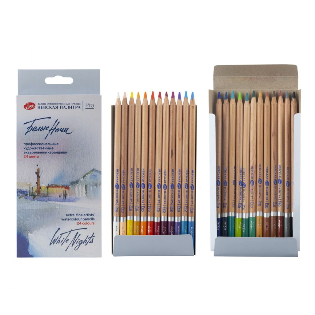 Акварельные карандаши «Белые ночи» разработаны специально для художников, дизайнеров и иллюстраторов. Совмещают преимущества цветных карандашей и акварельных красок. Позволяют добиваться графической точности и реалистичной детализации изображений, а при добавлении воды получать нежные акварельные работы. Также подходят для смешанных техник и различных эффектов. Благодаря высокой концентрации и тончайшему перетиру пигментов обладают яркими насыщенными цветами, бархатной мягкостью нанесения штриха и превосходной растворимостью. Смешение цветов как в сухом, так и во влажном состоянии дает новые чистые оттенки и плавные цветовые переходы.