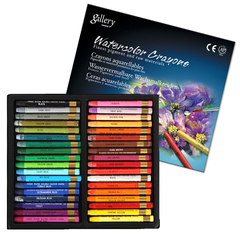 О серии: акварельные мелки Gallery производятся из лучших материалов. Представляют собой утолщённый карандаш без деревянного корпуса. Палитра серии гармонично подобрана. Могут быть использованы на сухой или мокрой бумаге. Хорошо размываются водой. Выпускаются в наборах. Производство: изготавливается компанией Munguo, которая была основана в 1946 году. С момента основания компания производит материалы для творчества. Изначально компания делала товары для школ и начинающих художников-студентов, но затем инженеры и химики компании начали творить и создали практически идеальные сочетания пигментов и связующих, которые легки в основу современных профессиональных материалов. Характеристика: цветные акварельные мелки с яркими и блестящими цветами. Хорошо размываются водой. Длина мелков 93 миллиметра, диаметр 8 миллиметров. Применение: для художественных и графических работ.