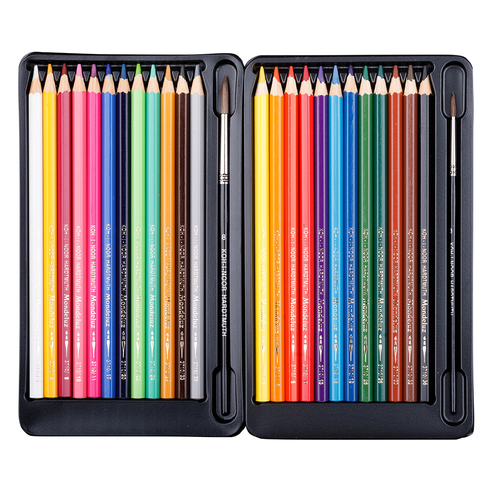 О серии: Mondeluz — это профессиональная серия акварельных карандашей. Грифель карандашей с высокой концентрацией пигмента, легко размывается водой. Карандаши удобны при работе с разными техниками живописи. Подходят для профессионального и любительского использования. В палитру вошло 76 различных цветов. Выпускаются в наборах с разным количеством цветов и поштучно. Характеристика: карандаши этой серии обладают яркими и насыщенными цветами. Хорошо ложатся на бумагу. Не выгорают на солнце. При необходимости размываются водой. Корпус карандаша выполнен из кедра, легко затачивается и не крошится. Применение: для художественных и графических работ. Подходит для начинающих и профессиональных художников. Производство: изготавливается компанией KOH-I-NOOR HARDTMUTH, которая является самым известным чешским производителем принадлежностей для рисования, канцелярских товаров и товаров для творчества. Компания получила название в честь алмаза «Кохинор» и была основана в 1790 году.