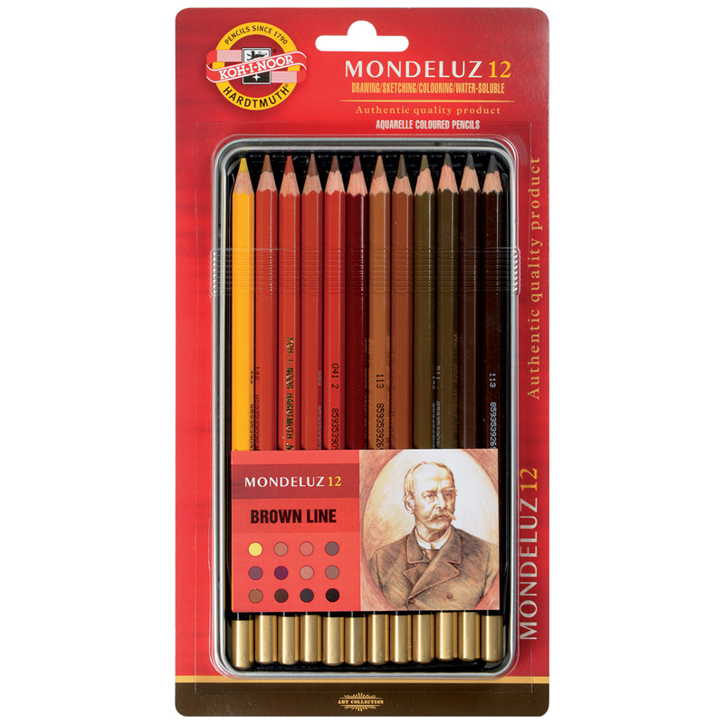 О серии: Mondeluz — это профессиональная серия акварельных карандашей. Грифель карандашей с высокой концентрацией пигмента, легко размывается водой. Карандаши удобны при работе с разными техниками живописи. Подходят для профессионального и любительского использования. В наборе подобраны карандаши коричневых оттенков, 12 цветов. Характеристика: карандаши этой серии обладают яркими и насыщенными цветами. Хорошо ложатся на бумагу. Не выгорают на солнце. При необходимости размываются водой. Корпус карандаша выполнен из кедра, легко затачивается и не крошится. Применение: для художественных и графических работ. Подходит для начинающих и профессиональных художников. Производство: изготавливается компанией KOH-I-NOOR HARDTMUTH, которая является самым известным чешским производителем принадлежностей для рисования, канцелярских товаров и товаров для творчества. Компания получила название в честь алмаза «Кохинор» и была основана в 1790 году.