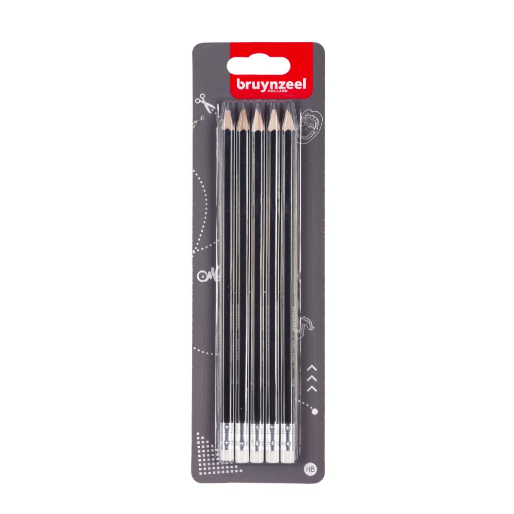 Чернографитные карандаши для записей, черчения, рисования и скетчей Bruynzeel Teen подойдут школьникам, студентам, начинающих художникам. В наборе 5 карандашей твердостью HB с ластиком. Стильный черный корпус имеет двойную проклейку по всей длине, благодаря чему карандаши устойчивы к излому. Для взрослых и детей старше 10 лет. Карандаши произведены из древесины, полученной из возобновляемых источников.