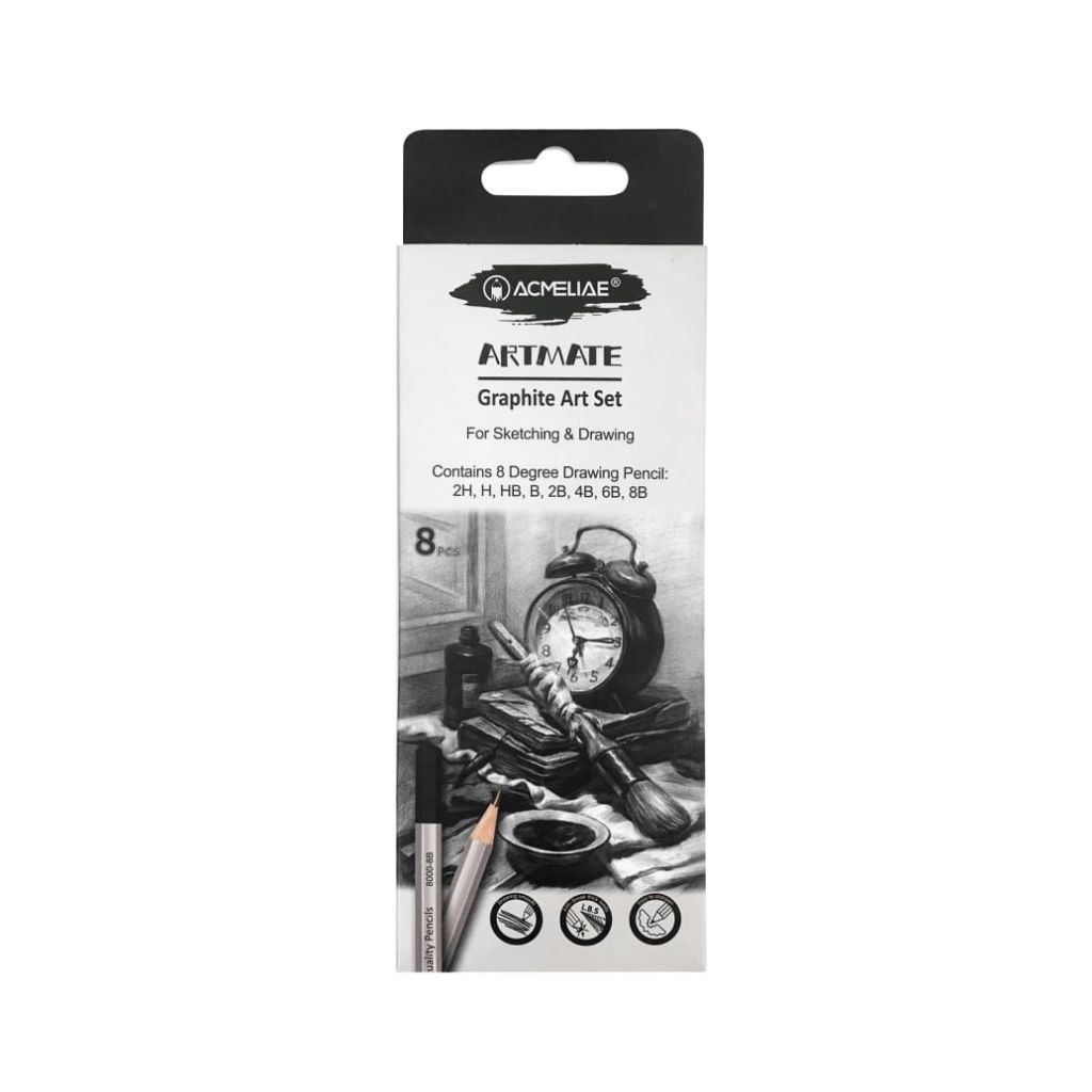Высококачественные чернографитные карандаши предназначены для черчения и рисования. Корпус карандашей шестигранной формы, выполнен из древесины, покрыт краской и матовым лаком. Профессиональная проклейка грифеля обеспечивает обеспечивает максимальную стойкость к поломкам, грифель не крошится и не царапает бумагу, легко затачивается до нужной остроты. Художественные чернографитные карандаши подойдут для студентов вузов, инженеров, художников, архитекторов, чертёжников, дизайнеров, художественных студий, школ, колледжей, школьников. В наборе 8 карандашей разной степени твердости, поставляются в картонной коробке.