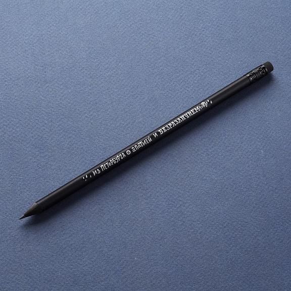 Чернографитный карандаш твердостью НВ в круглом корпусе из черной древесины. На обратной стороне карандаша имеется ластик. Размер: 190 х 7 мм.