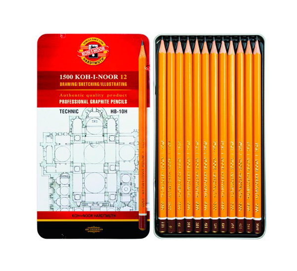 KOH-I-NOOR HARDTMUTH - самый известный чешский производитель принадлежностей для рисования, канцелярских товаров и товаров для творчества. Компания получила название в честь алмаза «Кохинор» и была основана в 1790 году. Карандаш чернографитовый серии 1500 от KOH-I-NOOR – это классический «желтый карандаш», который все знают. Его корпус изготовлен из древесины калифорнийского кедра. Серия чернографитовых карандашей KOH-I-NOOR выпускается с 1888 года и изначально имела 17 градаций твердости. Затем компания увеличила количество градаций до 20 и в таком виде карандаши серии 1500 выпускаются до сих пор. Традиционное производство чернографитовых карандашей KOH-I-NOOR можно считать ноу-хау. Из-за сложности изготовления такие карандаши не удалось повторить ни одной компании. Серия карандашей 1500 подходит как для студентов, которые выполняют чертежные работы, так и для профессионалов, занимающихся графикой. Традиционная шкала градаций твердости была изобретена именно благодаря этой серии и буквы H, B, F обозначали Hardtmuth, Bud?jovice и Franz Hardtmuth. Твердым грифелем обладает карандаш с маркировкой H. Буква B означает мягкость. F – карандаш средней