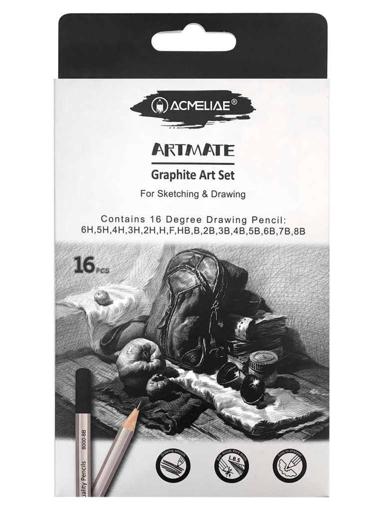 Набор чернографитных карандашей в 16 твердостях: 6H, 5H, 4H, 3H, 2H, H, HB, F, B, 2B, 3B, 4B, 5B, 6B, 7B, 8B. Диаметр грифеля от 2 до 3,5 мм в зависимости от твёрдости карандаша. Высокое качество рисования, эскизов, набросков, скетчей, чертежей любой сложности. Профессиональный проклейка грифеля L.B.S.(корпус с грифелем составляет одно целое) предотвращает его поломки при падении и затачивании. Однородный грифель карандаша не царапает бумагу, оставляет четкие яркие линии, не крошится, затачивается до нужной остроты. Шестигранный корпус легкий, удобно лежит в руке, пальцы не скользят – можно работать без усталости. Корпус из высококачественной древесины ровно и аккуратно затачивается стандартными точилками, не меняет цвет, упругость, не трескается. Длина корпуса 178 мм. Матовая бархатистая лакированная поверхность, серебристый корпус, запаянный верх. Заточенные. Художественные профессиональные карандаши подойдут для студентов вузов, инженеров, художников, архитекторов, чертежников, дизайнеров, художественных студий, школ, колледжей, школьников.