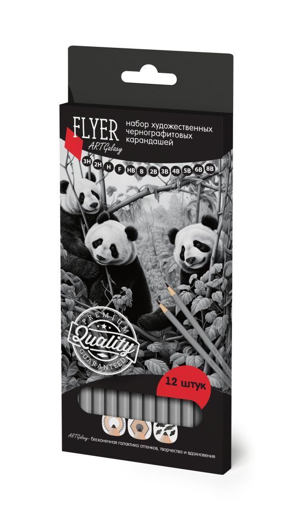 Классические чернографитовые карандаши различной степени твёрдости, рекомендуются для выполнения художественных работ, графических зарисовок и чертежей как опытными художниками, так и начинающими. Градация твердостей карандашей в наборе перекрывает диапазон техники живописи, иллюстрирования, дизайна, архитектуры, графики. Грифели карандашей не царапают бумагу и не крошатся. Насыщенность каждого графитового оттенка зависит от степени его твёрдости. Специальная пропитка древесины из которой изготовлен корпус карандаша и сплошная проклейка грифеля по технологии SV, обеспечивает достаточно высокую ударопрочность. Тем временем, мягкая древесина и идеальная центровка грифеля гарантирует легкую заточку с экономным расходом карандаша, а шестигранный корпус предотвращает скатывание карандашей с поверхностей.