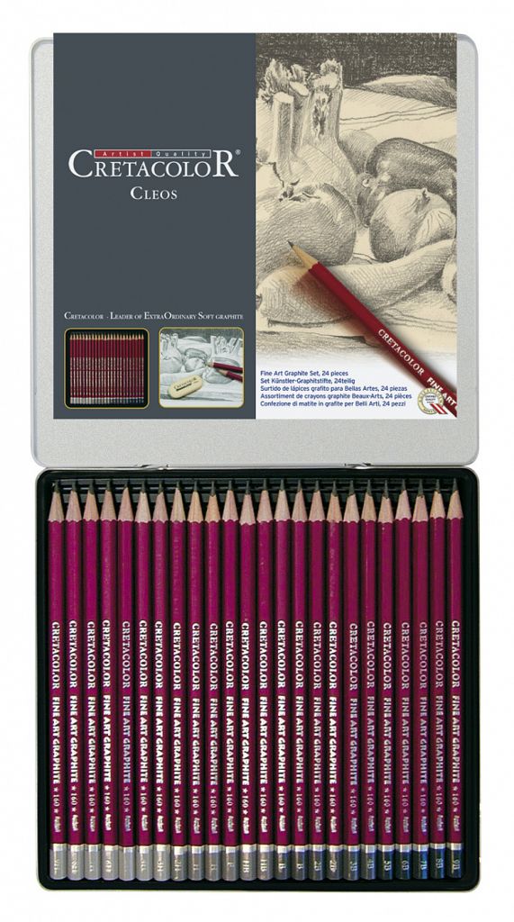 Чернографитные карандаши "Cretacolor" CLEOS изготовлены из высококачественного графита в корпусе из твердого кедрового дерева. Карандаши являются исключительно прочными, отлично затачиваются. Карандаши "Cretacolor" CLEOS для изобразительного искусства отличаются особенной гладкостью линий и легко смешиваются, имеют удобный шестигранный корпус. Идеально подходят для рисования тонких, четких деталей, тонирования, иллюстраций, эскизов, зарисовок, а также для работы на больших поверхностях. Набор включает 24 карандаша – от 9B до 9Н в металлической коробке.