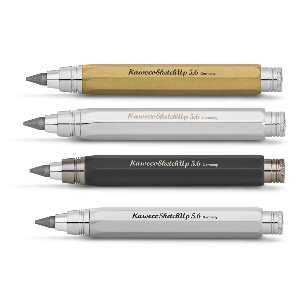 Карандаш Sketch Up Black произведен из литой латуни, в зависимости от модели может быть покрыт черным матовым цветом, хромированный или без покрытия. Латунь без покрытия со временем обретет неповторимую патину, подчеркивая уникальность карандаша. Стильный прочный корпус долго сохраняет первоначальный вид. У карандашей серии Sketch Up эксклюзивный дизайн начала 20-го века, отличающийся оригинальной восьмигранной формой. Гравировка на корпусе. Металлический логотип на колпачке, кнопка и цанги серебристые. Длина карандаша всего 10,3см, он легко помещается в небольшую сумку или карман, выглядит компактно, но основательно и солидно, не создавая ощущения миниатюрности. Диаметр карандаша в самом широком месте 1,3см. Карандаш идёт в комплекте с одним стержнем 5,6мм (5B). Подходят стержни диаметром от 5,4мм до 5,7мм. В кнопку карандаша встроена точилка. К карандашу можно отдельно приобрести клип. Инструменты Kaweco собирают вручную. Перед выпуском с завода каждый карандаш проходит контроль специалистами.
