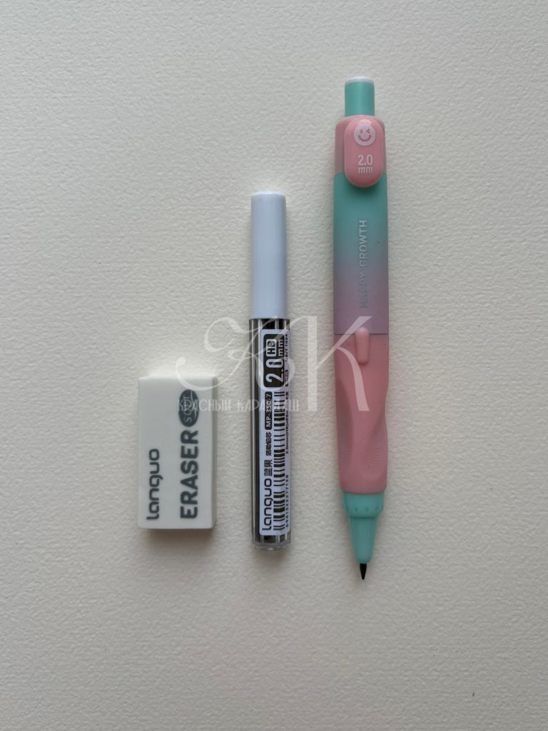 Карандаш механический Languo отличается элегантным дизайном. Пластиковый фигурный корпус с резиновым держателем и яркими цветами. Подача грифеля осуществляется с помощью кнопочного механизма. В наборе: карандаш, мягкий ластик и сменные стержни Languo 2,00 мм HB