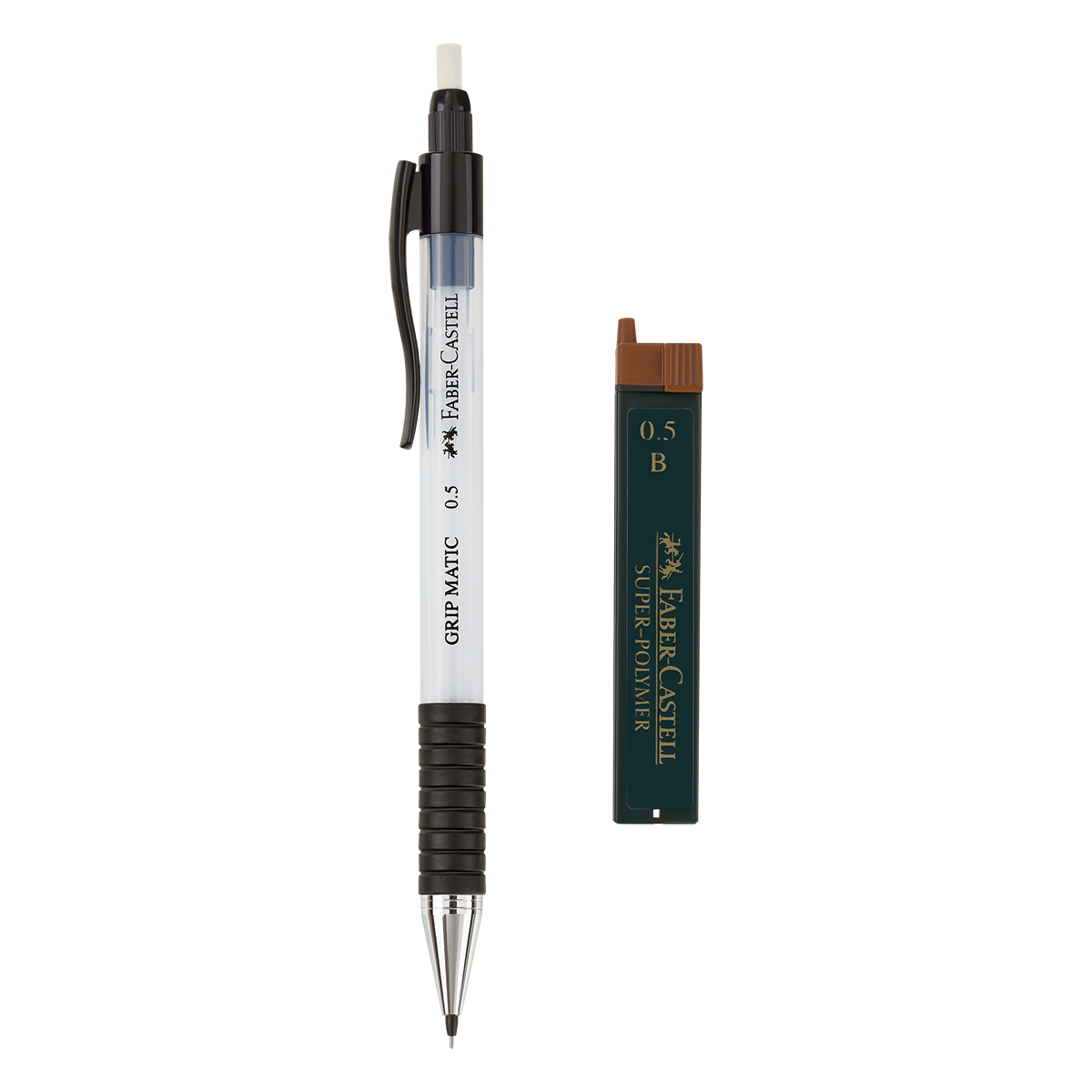 Механический карандаш Grip Matic от немецкого производителя Faber-Castell оснащен системой автоматической подачи грифеля, при которой нажатие кнопки не требуется. Удобная резиновая зона захвата делает письмо комфортным. На торцевой части карандаша расположен выдвижной ластик, который мягко стирает и не оставляет разводов. Ластик не содержит ПВХ. Толщина линии: 0,5 мм.