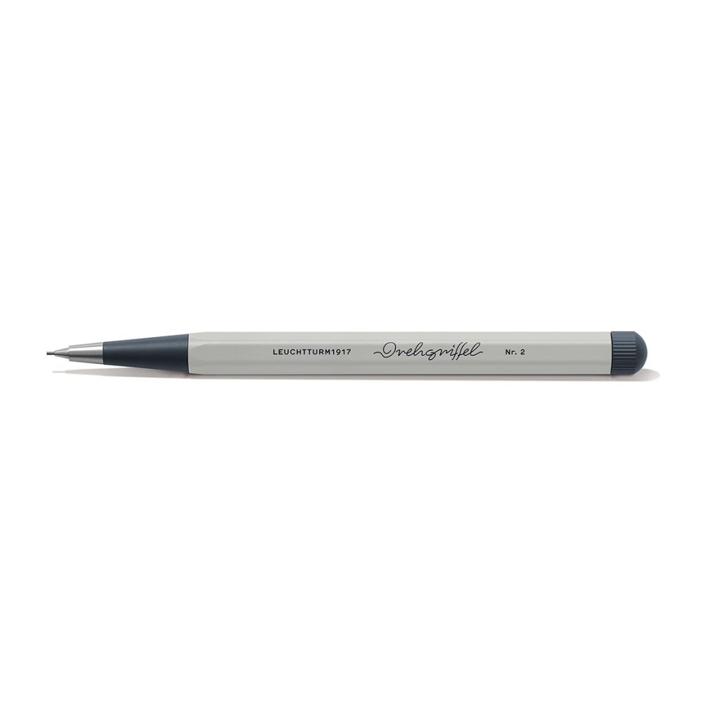 Механические карандаши Drehgriffel Nr.2 0 станут идеальным дополнением к блокнотам Leuchtturm1917 серии Natural Colors, цвета корпуса этих карандашей с точностью совпадают с цветом обложек блокнотов. Корпус карандашей выполнен из алюминия, а наконечник из прочной стали. Карандаши оснащены поворотным механизмом подачи стержня. Толщина грифеля 0.7 мм., твердость грифеля HB. Также внутри карандаша размещён резервуар для запасных грифелей. Длина карандаша 13 см.