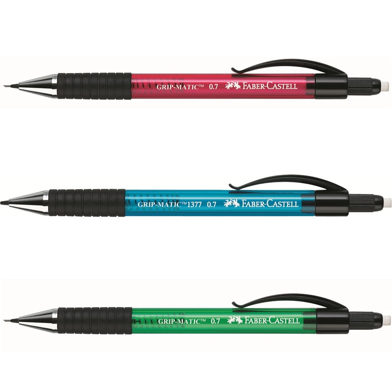 Механический карандаш Faber-Castell Grip-Matic - незаменимый атрибут современного делового человека дома и в офисе. Корпус карандаша круглой формы выполнен из высококачественного пластика и дополнен резиновой областью захвата и длинным выдвижным ластиком. Карандаш оснащен инновационной системой, позволяющей грифелю выдвигаться в зависимости от письма в оптимальном объеме. Мягкое комфортное письмо и тонкие линии при написании принесут вам максимум удовольствия. Толщина линии: 0,7 мм.
