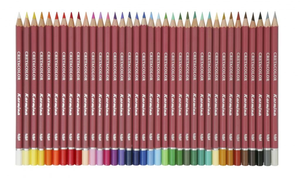 Цветные карандаши Karmina имеют высокую светостойкость, а высокое содержание натуральных высококачественных пигментов дают хорошо выраженные яркие цветовые тона. Данные карандаши идеально подходят для работы в различных техниках, например – нанесение слоя за слоем, штриховка, фроттаж, растушёвка, а так же идеально подходят для применения с другими художественными материалами. Идеально гладкий стержень диаметром 3,8 мм наносит мягкий насыщенный штрих.