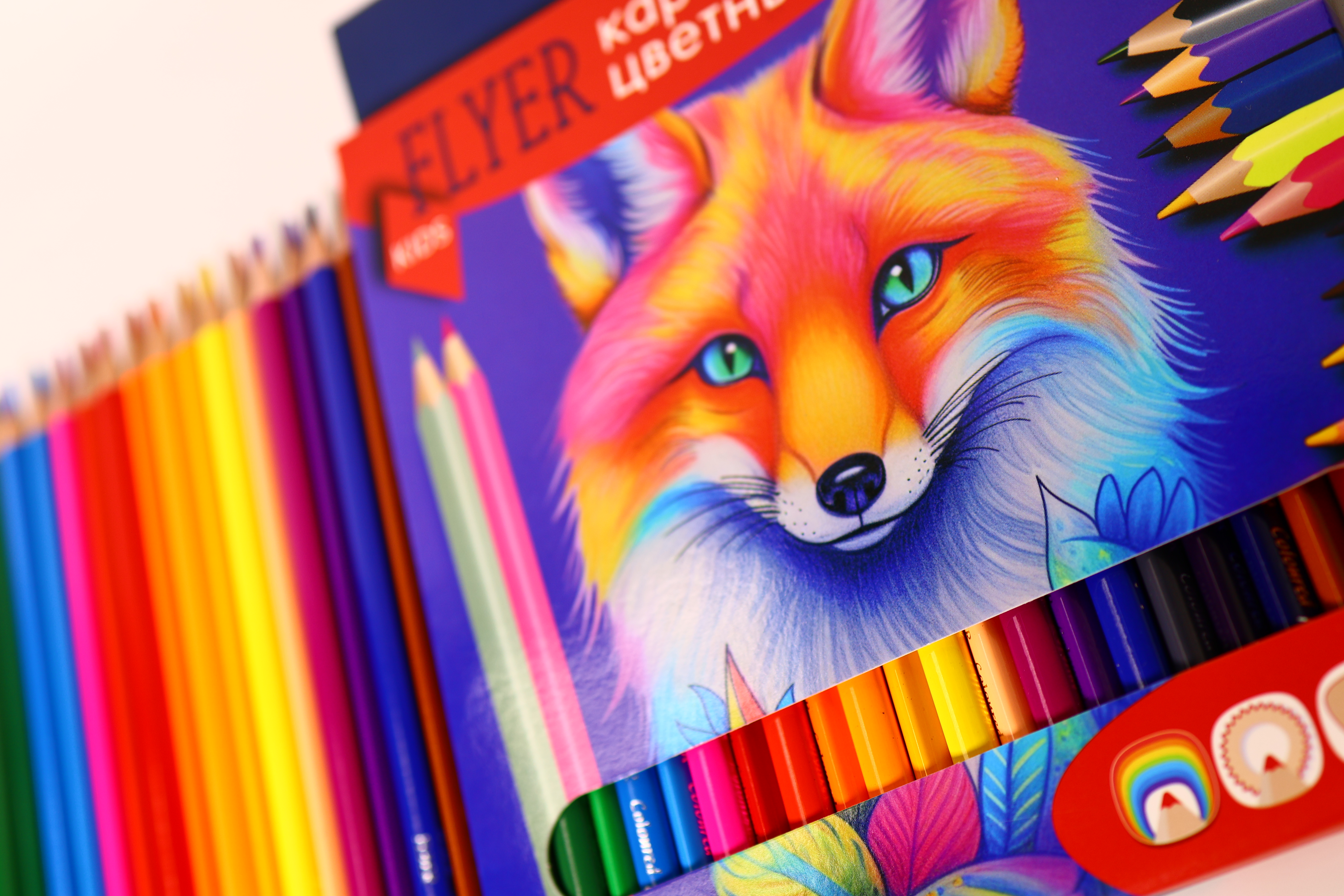 Цветные карандаши от бренда FLYER предназначены для художественного изобразительного творчества детей, школьников и взрослых. Отвечают требованиям безопасности, нетоксичны. Корпус карандашей сделан из натуральной мягкой древесины. Цвета карандашей насыщенные, грифель карандашей мягкий, не пылит и не крошится. Легко и ровно наносятся на бумагу различного типа. Сплошная проклейка грифеля по технологии SV, обеспечивает достаточно высокую удоропрочность. Легко наносится на бумагу, оставляя яркий штрих, позволяют работать в различных техниках, например, нанесение слоев, штриховка, фротаж, растушевка. Все цвета отлично смешиваются, позволяя создавать плавные переходы. Благодаря эргономичной трехгранной форме корпуса с карандашами легко работать, они удобно располагаются в детской руке и не скатываются с рабочей поверхности.