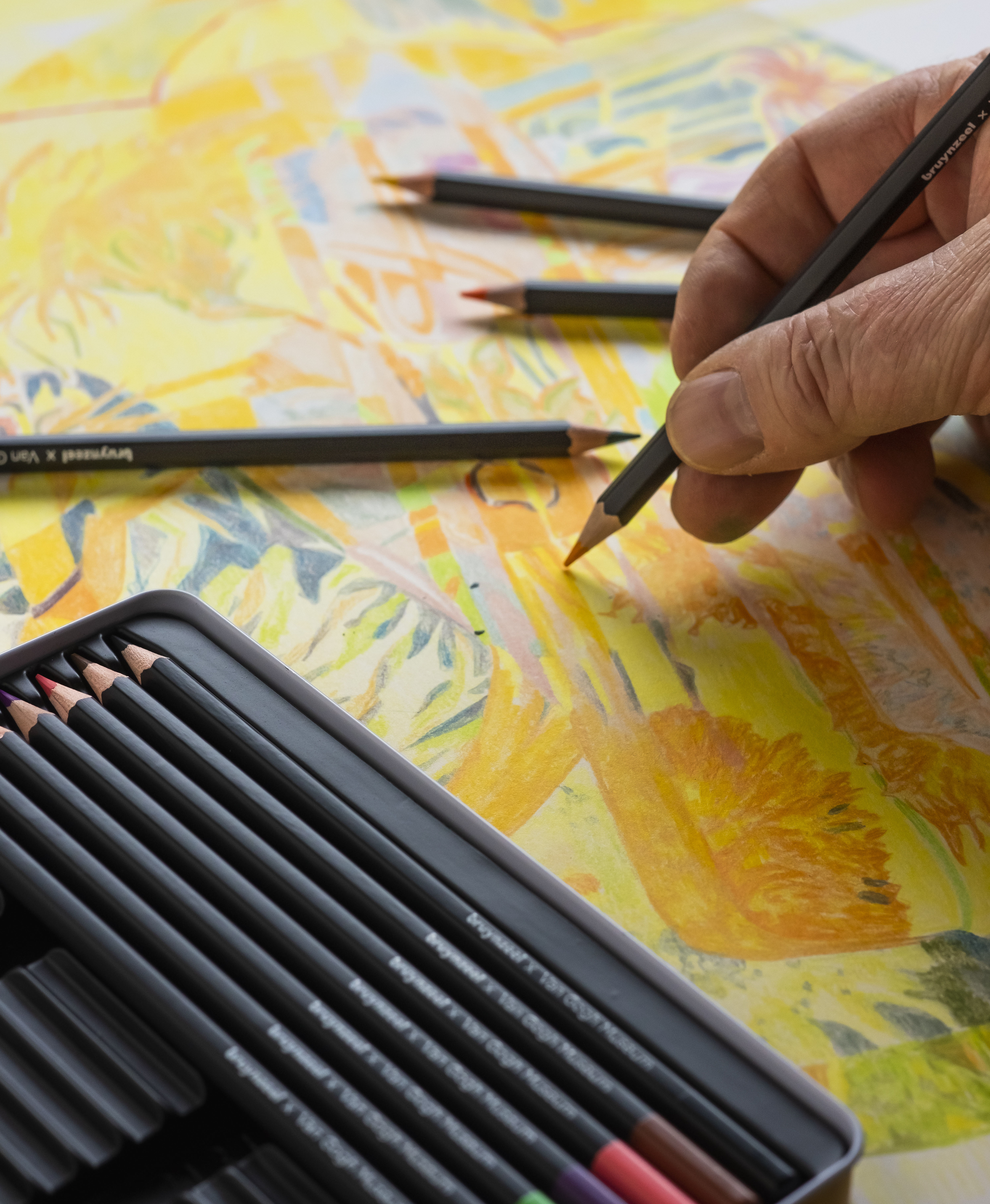 Набор цветных карандашей Bruynzeel серии Van Gogh Museum посвящен самой яркой работе Ван Гога "Подсолнухи". В наборе собрана палитра ярких цветов для самых смелых ваших работ. Основные характеристики: Двойная проклейка стержня по всей длине карандаша Высокое содержание пигментов в стержне Все оттенки прекрасно сочетаются друг с другом Прочная металлическая коробка Толщина стержня 2,9 мм.