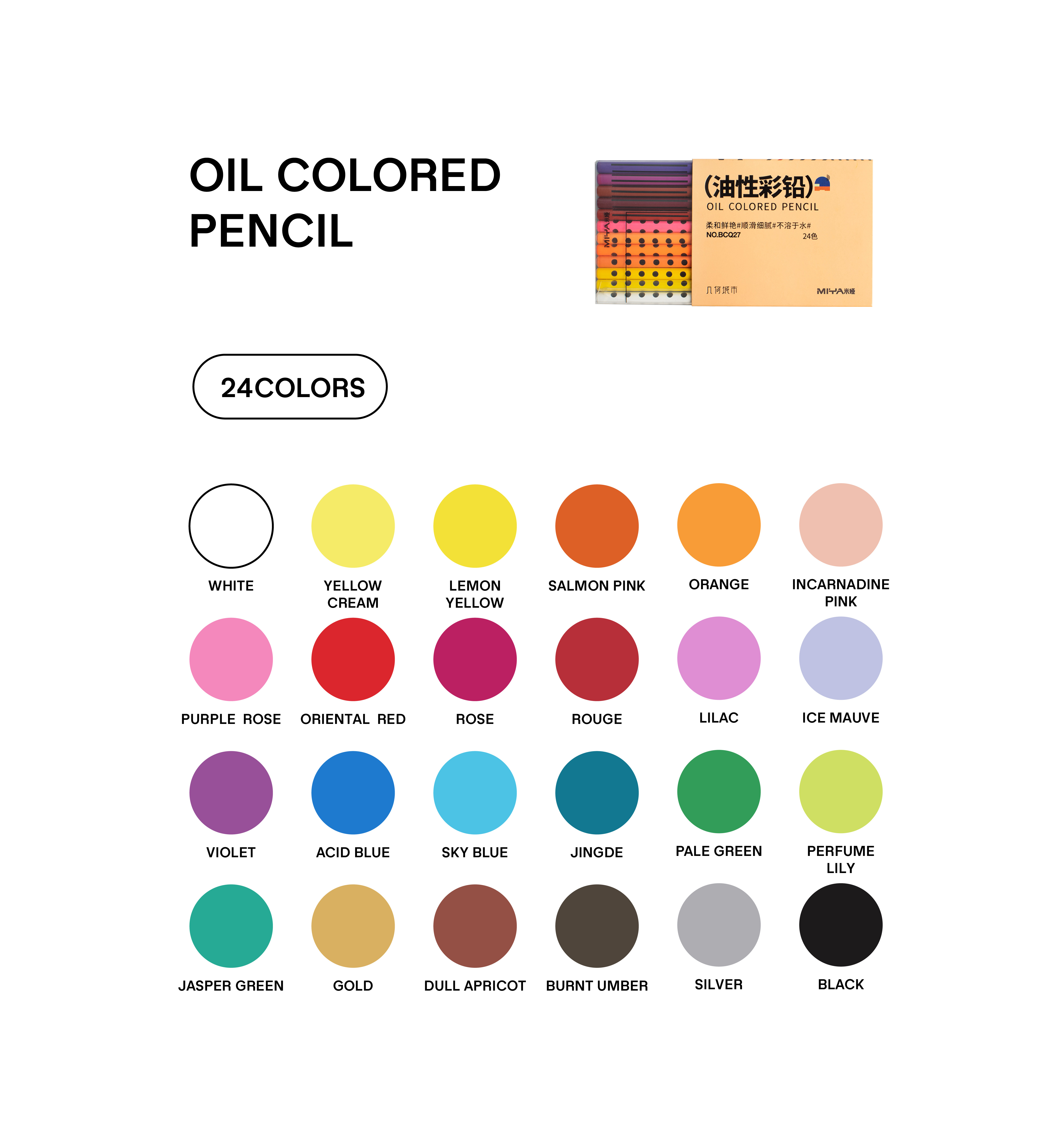 В наборе 24 цветных карандаша на масляной основе. Масляные цветные карандаши отличаются мягкостью и отличной укрывистостью. Карандаши хорошо ложатся на бумагу любого типа, могут использоваться для рисования на холстах и других поверхностях. Масляная основа и высокое содержание пигментов обеспечивают яркость и насыщенность цвета, высокая укрывистость позволяет работать даже на тонированной бумаге. Серия представлена наборами различной комплектации.