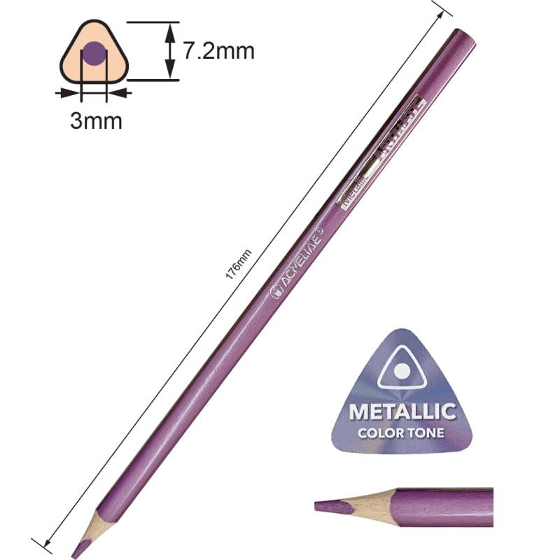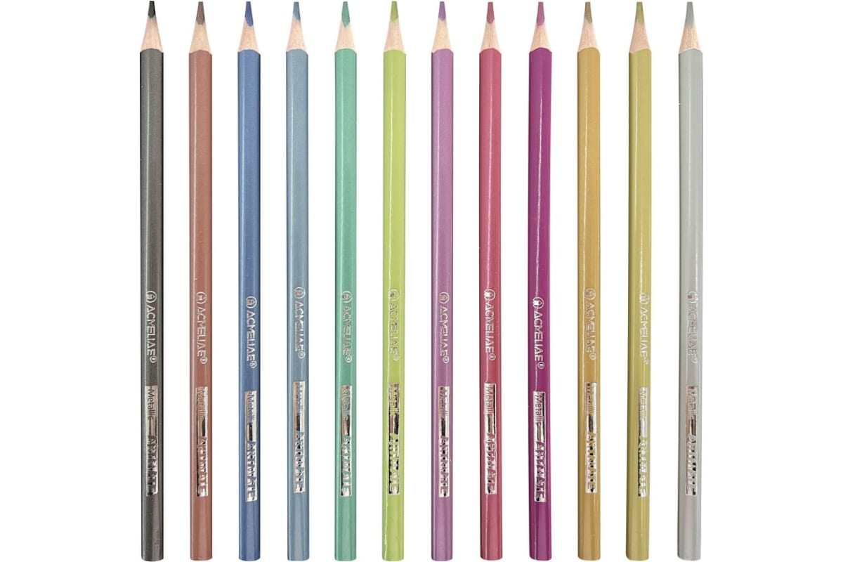 В наборе 12 ярких цветов «металлик» с хорошей покрывающей способностью. Подходит для белой и темной (черной) бумаги. Мягкий грифель диаметром 3 мм легко наносится, не царапает бумагу, не крошится. Рисунки, сделанные ими, получаются яркими, насыщенными. Специальная проклейка грифеля для максимальной стойкости к поломкам - L.B.S. (связующая система грифеля). Цвета не размываются водой, не выцветают, рисунки надолго сохраняют цвет. Все карандаши эргономичной трехгранной формы, наиболее удобной для правшей и левшей. Корпус из натурального дерева ровно и аккуратно затачивается. Многослойное лаковое покрытие – идеальный внешний вид карандашей. Длина карандаша 176 мм. Подходят для бумаги разного типа, в т.ч. фактурной.