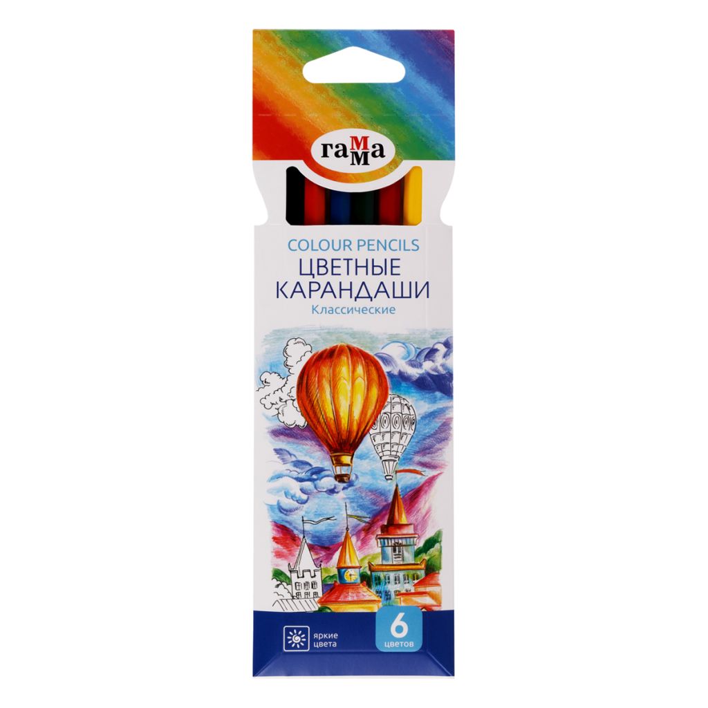 Цветные карандаши ГАММА серии «Классическая» созданы специально для детей, которые уже чувствуют себя настоящими художниками. В наборе 6 цветов: желтый, оранжевый, красный, синий, зеленый, черный. Диаметр грифеля — 2,9 мм. Проклеенный ударопрочный грифель не крошится во время заточки и не ломается даже после падения. Корпус карандаша диаметром 7 мм и длиной 174 мм изготовлен из мягкой натуральной древесины и его легко точить. За яркость и высокую укрывистость отвечают качественные пигменты в составе. Ребенку не придется сильно давить на карандаш — рисунок получится ярким и равномерно закрашенным.