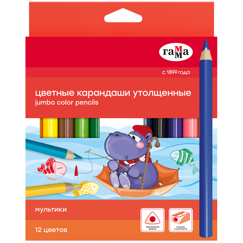 Утолщенные цветные карандаши разработаны специально для начинающих юных художников. Прочный грифель повышенной мягкости и увеличенного диаметра 5,0 мм обеспечивает легкое скольжение и рисование на бумаге любого типа, а утолщенный корпус трехгранной формы удобно ложится в руку ребенка. Цвета яркие и укрывистые, не выцветающие со временем, благодаря высококачественным пигментам в составе.