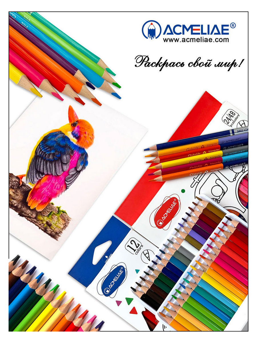 Набор цветных карандашей для детского творчества. Специальная проклейка грифеля для максимальной стойкости к поломкам — важно для маленьких детей. Яркие красивые натуральные цвета не размываются водой, не выцветают, оставляют руки и одежду ребёнка чистыми, легко наносятся, рисунки получаются живые. Корпус из древесины тополя ровно аккуратно затачивается. Трёхгранный корпус удобен для правшей и левшей, снижает усталость руки и прививает навык правильно держать карандаш. Длина карандаша 175 мм. Диаметр грифеля 3 мм. Карандаши идеальны для малышей от 3-х лет. Качество соответствует европейским стандартам EN71 (требования ЕС к игрушкам) и REACH (отсутствие вредных веществ). Многослойное лаковое покрытие – идеальный внешний вид карандашей. Экологичны: используется древесина сертифицированных и специально подготовленных лесов. Выпускаются в двух дизайнах упаковки, возможность выбора дизайна отсутствует, он будет случайным.