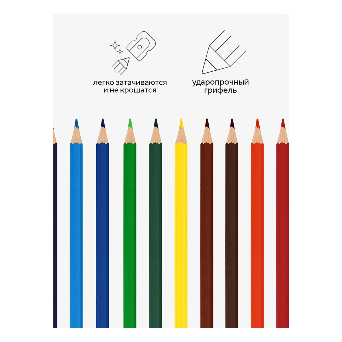 Цветные карандаши «ГАММА» серии «Классическая» в удобной упаковке-конверте и креативном дизайне созданы специально для детей, которые уже чувствуют себя настоящими художниками. В наборе 12 цветов. Диаметр грифеля — 2,9 мм. Шестигранный корпус карандаша диаметром 7 мм. и длиной 174 мм. изготовлен из мягкой натуральной древесины и его легко точить. Проклеенный ударопрочный грифель не крошится во время рисования и не ломается даже после падения. За яркость и высокую укрывистость отвечают качественные пигменты в составе. Ребёнку не придется сильно давить на карандаш — рисунок получится ярким и равномерно закрашенным.
