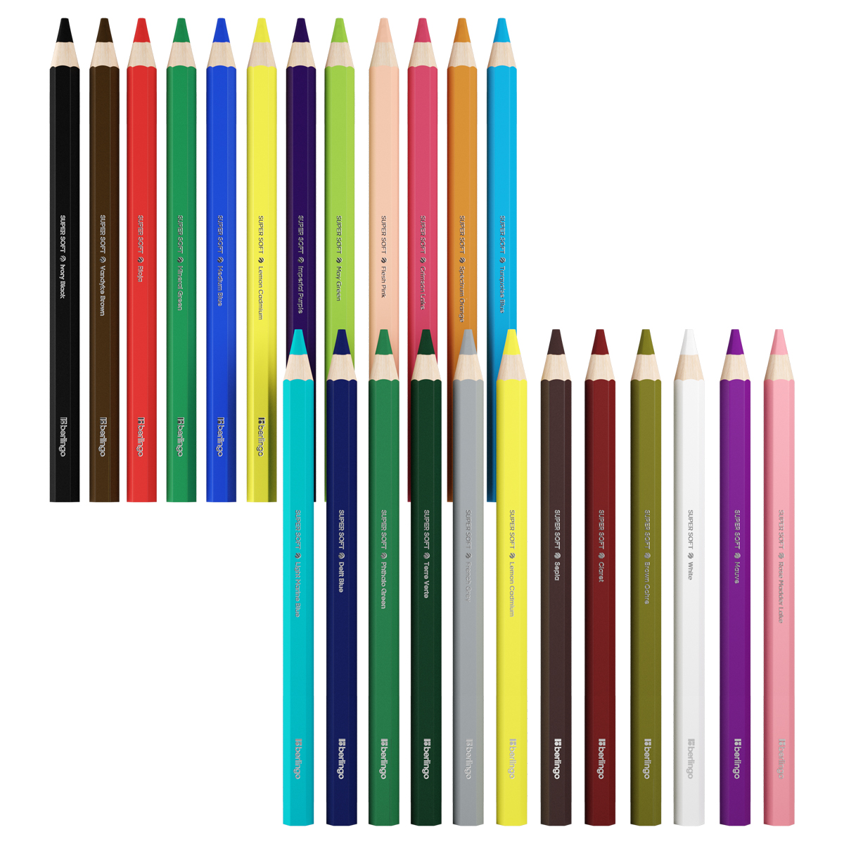 SuperSoft — линейка качественно новых цветных карандашей Berlingo. Набор из 24 цветов. Шестигранная утолщенная форма корпуса удобно ложится в руку ребенка. Указание цвета на каждом карандаше на английском языке. Поле для подписи имени владельца на каждом карандаше. Упаковка в плотную матовую картонную коробку со склеенным европодвесом. Грифели высочайшего стандарта качества 8А, являющегося максимальным для нехудожественных цветных карандашей. Мягкость письма, сравнимая с рисованием маслом и пастелью. Яркие насыщенные цвета, обладающие превосходной смешиваемостью. Увеличенная до 5 мм толщина грифеля для безупречно комфортного раскрашивания. Уникальная формула и технология производства грифелей, в результате которой достигается одновременно удивительная мягкость письма и прочность, позволяющая грифелю выдерживать даже сильное нажатие под углом 45 градусов. Специальная проклейка, предотвращающая поломку грифеля внутри карандаша при падении. Стойкость к повреждениям. Корпус из древесины высшего качества, прошедшей тщательную обработку. Материал, сохраняющий свою прочность и легко поддающийся ровной заточке без усилий. Уникальная антибактериальная обработка на специализированном оборудовании, гарантирующая безопасное использование продукции детьми.