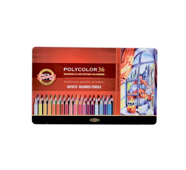 О серии: при производстве цветных карандашей «Polycolor» помимо высококачественных пигментов использованы специализированные масла. Благодаря тщательно подобранным компонентам карандаши хорошо ложатся на бумагу даже без сильного нажима. Карандаши обладают сильной светостойкостью. В палитре представлено 72 различных цвета. Выпускаются в наборах с различным количеством цветов. Характеристика: хорошо ложатся на бумагу. Яркие и насыщенные цвета. Высокая светостойкость обеспечивает сохранность работ в течении долгих лет. Диаметр грифеля 3,8 миллиметра. Шестигранный корпус выполнен из калифорнийского кедра. Применение: для художественных и графических работ. Подходит для художников всех уровней. Производство: изготавливаются компанией KOH-I-NOOR HARDTMUTH, которая является самым известным чешским производителем принадлежностей для рисования, канцелярских товаров и товаров для творчества. Компания получила название в честь алмаза «Кохинор» и была основана в 1790 году.