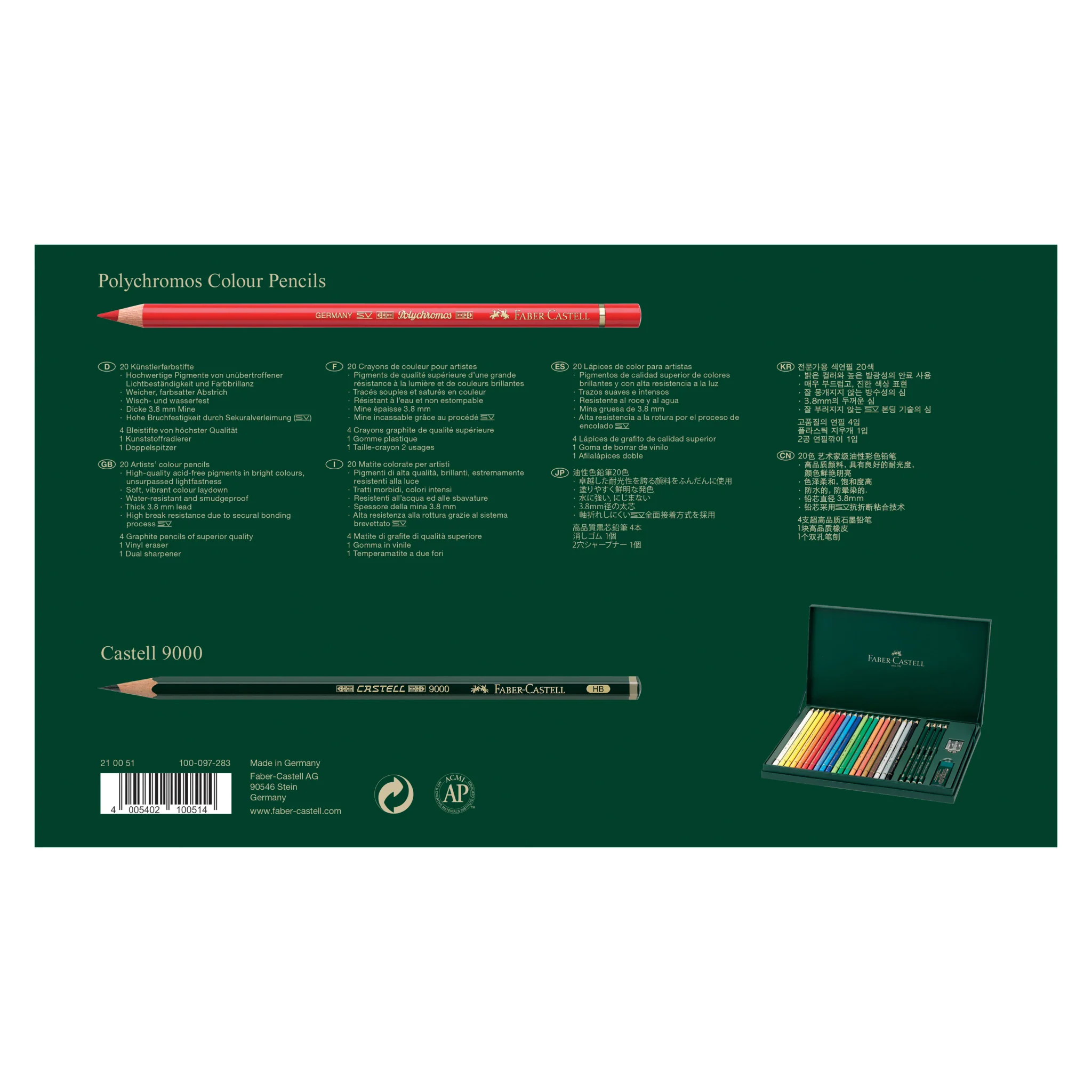 Цветные профессиональные карандаши Polychromos содержат много высококачественного пигмента и воск, за счёт чего обладают высокой светостойкостью, и цвета остаются насыщенными даже при наложении друг на друга. Карандаши Polychromos ценятся среди художников разной квалификации. Уникальная SV-технология, когда грифель вкладывается в пазы, тщательно смазанные синтетической смолой, и очень прочно фиксируется в деревянном корпусе, делает грифель ударостойким. Цвета карандашей - яркие, штрихи - мягкие, они не размазываются и не размываются. Карандаши цветные профессиональные Polychromos имеют круглый корпус, выполненный из специальных хвойных пород.