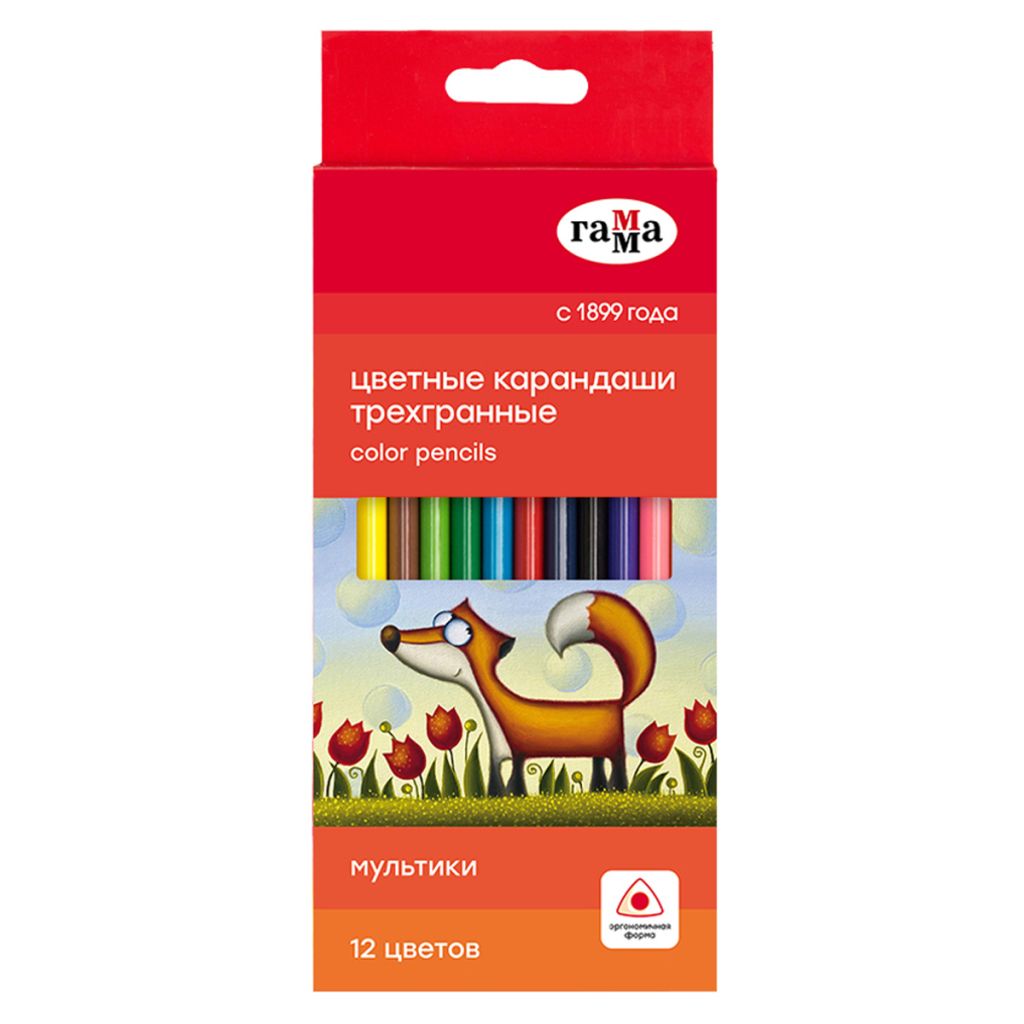 Цветные карандаши ГАММА серии «Мультики» выполнены в эргономичном трёхгранном корпусе, который подскажет ребенку, как правильно держать карандаш во время творческих занятий. В наборе 12 цветов: жёлтый, оранжевый, розовый, красный, салатовый, зеленый, голубой, синий, фиолетовый, бежевый, коричневый, черный. Диаметр грифеля – 2,9 мм. Проклеенный ударопрочный грифель не крошится во время заточки и не ломается даже после падения. Корпус карандаша длиной 174 мм изготовлен из дерева. Специальная обработка древесины позволяет легко заточить карандаш без зазубрин и заноз. За яркость и высокую укрывистость отвечают качественные пигменты в составе. Ребенку не придется сильно давить на карандаш – рисунок получится ярким и равномерно закрашенным.
