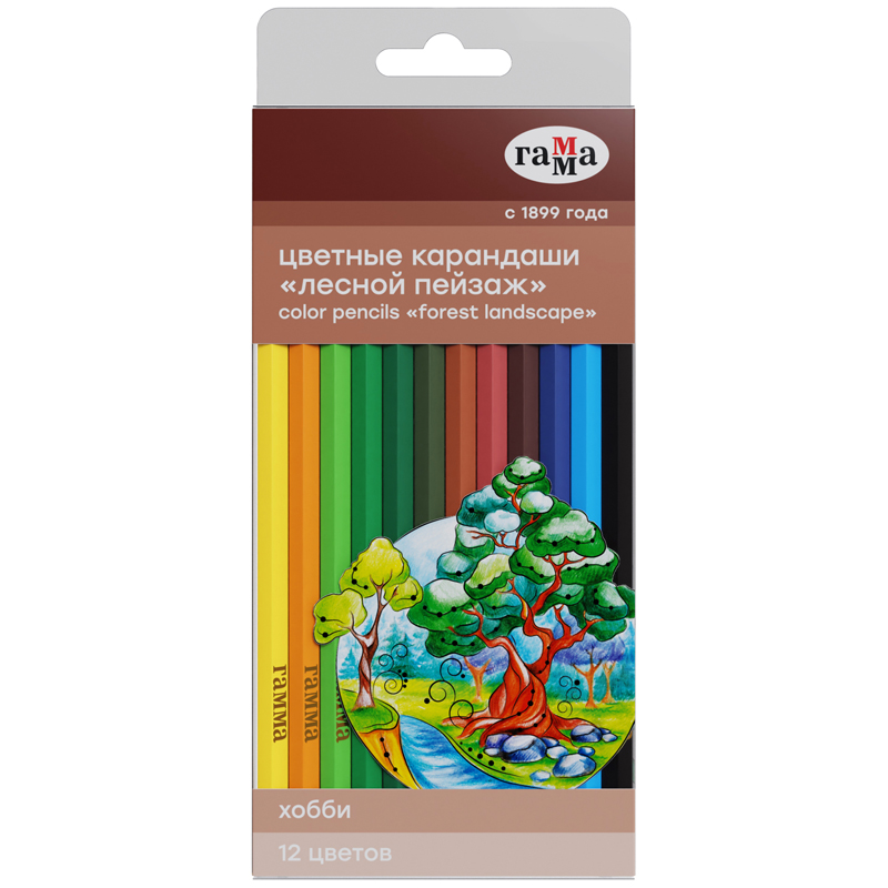 Цветные карандаши "Хобби" представлены в тематическом наборе "Лесной пейзаж". В наборе 12 цветов, которые подобраны специально для создания соответствующих картин. Карандаши яркие и укрывистые благодаря высококачественным пигментам в составе. Специальная обработка древесины позволяет легко заточить карандаш без зазубрин и заноз.