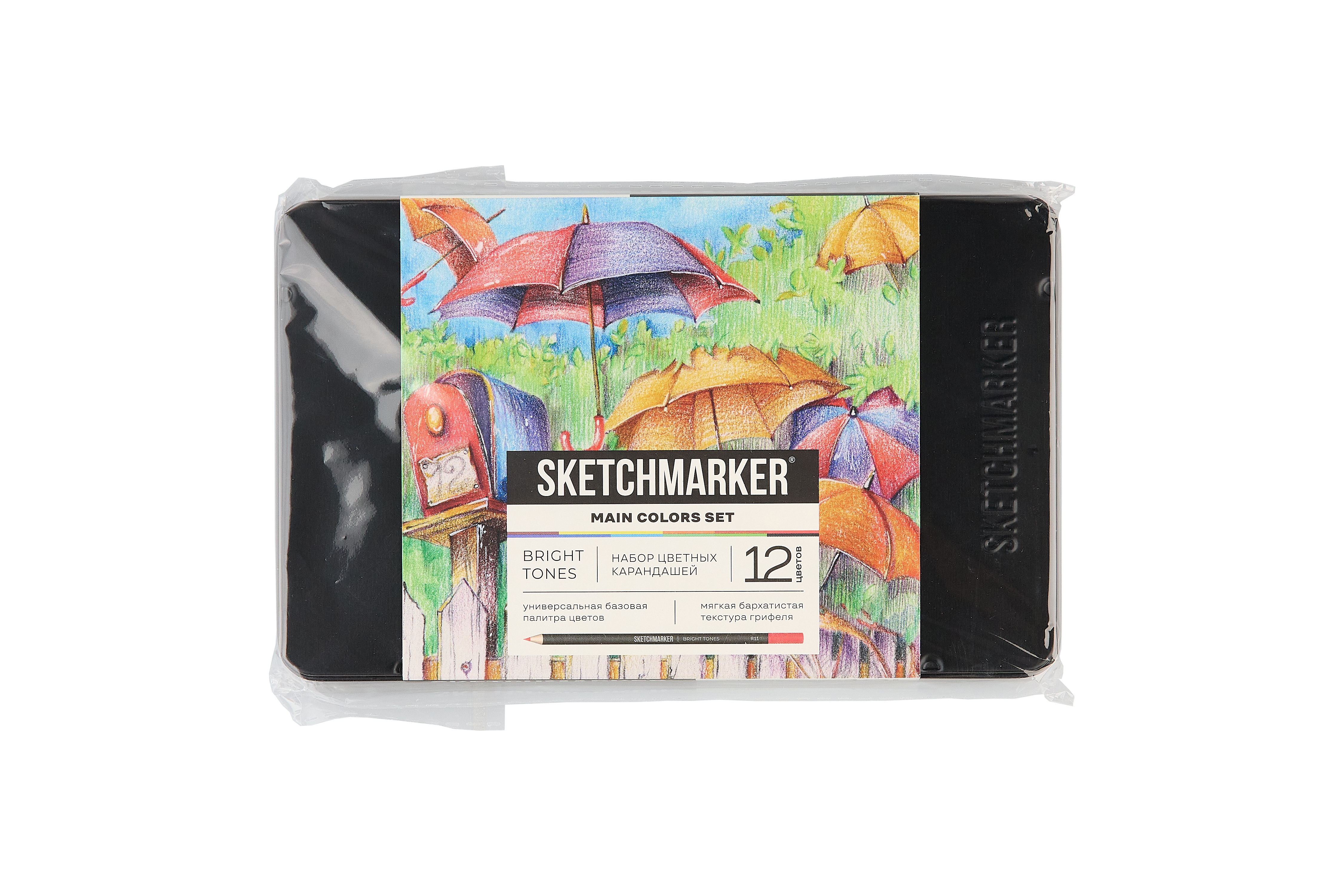 "Sketchmarker Bright Tones Main Set – 12 базовых цветов. Цветные карандаши созданы для ежедневного творчества и лёгких ярких зарисовок. Мягкое письмо и удобное нанесение позволяют комфортно раскрашивать и работать с цветом. Оттенки получаются яркими и выразительными, а плотное покрытие помогает легко заполнить цветом большие и малые участки рисунка. Карандаши хорошо наслаиваются друг на друга, позволяя смешивать тона и получать новые оттенки без сложных техник. Карандаши нужно затачивать ножом. Подходят для рисования в скетчбуках; раскрашивания антистресс-раскрасок; создания иллюстраций; создания открыток, плакатов, постеров; использования в коллажах и смешанных техниках; создания зарисовок на пленэре; эскизов и скетчей для дизайнеров, цветовых схем, fashion-скетчинга; концепт-арта; украшения писем и конвертов; оформления подарков; оформления ежедневников, планеров, трекеров. Это надёжный и понятный инструмент для всех, кто любит рисовать просто и с удовольствием. Корпус из липы и проклейка по всей длине. Длина карандаша - 17,5 см; диаметр карандаша - 7,6 мм; толщина грифеля - 4 мм. Грифель на масляной основе. Цвета в наборе: BR3 коричневый кофейный / coffee +++, 33 желтый лимонный / lemon yellow +++; Y7 желтый / yellow +++; O9 оранжевый / orange +++; R14 красный английский / english red +++; R11 красный / red +++; V12 фиолетовый / purple +++; B4 синий кобальт / cobalt blue +++; B6 небесно-голубой / sky blue +++; G8 зеленый / green +++; G44 желто-зеленый / yellowish green +++; SB черный / black +++."