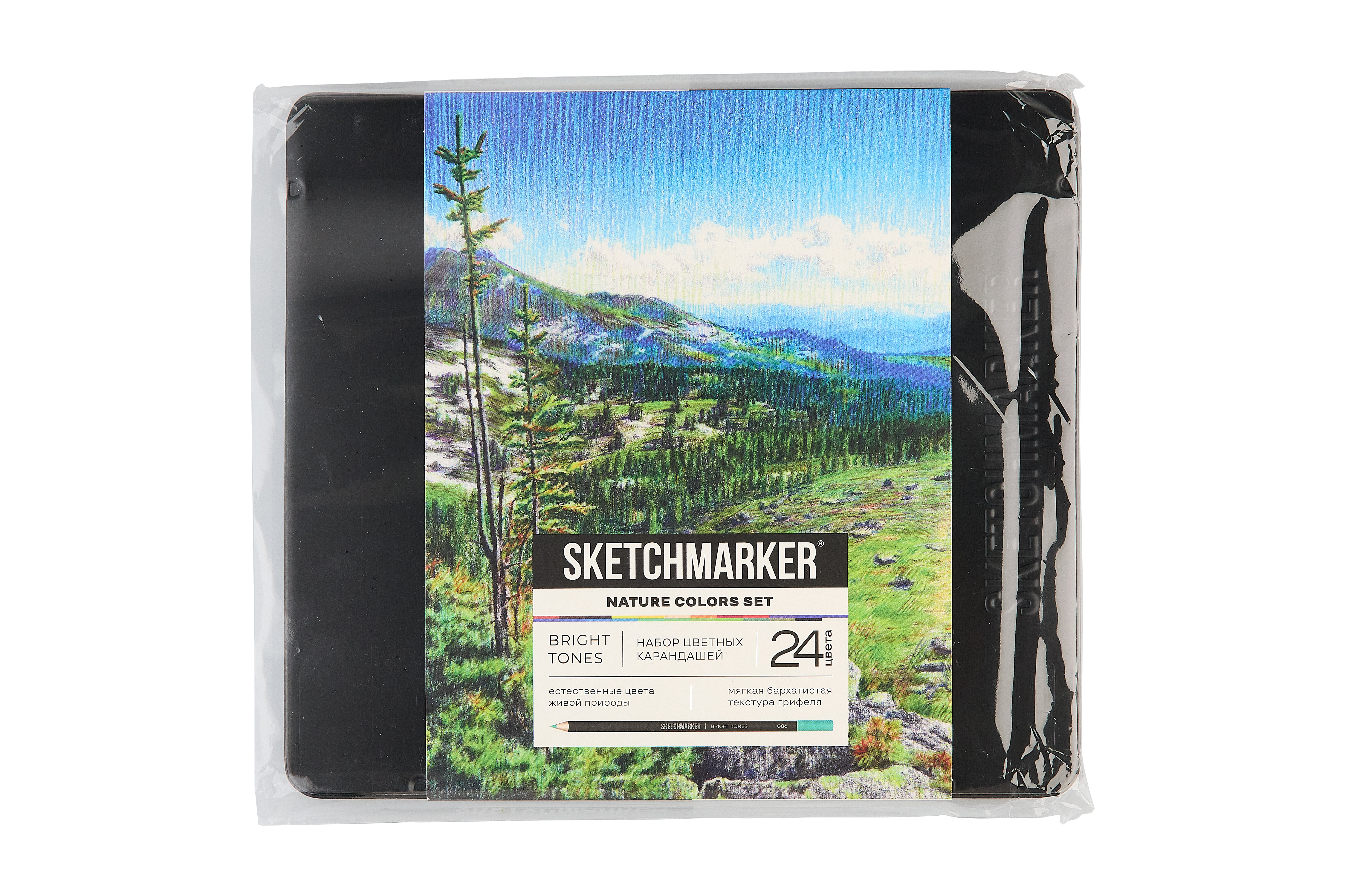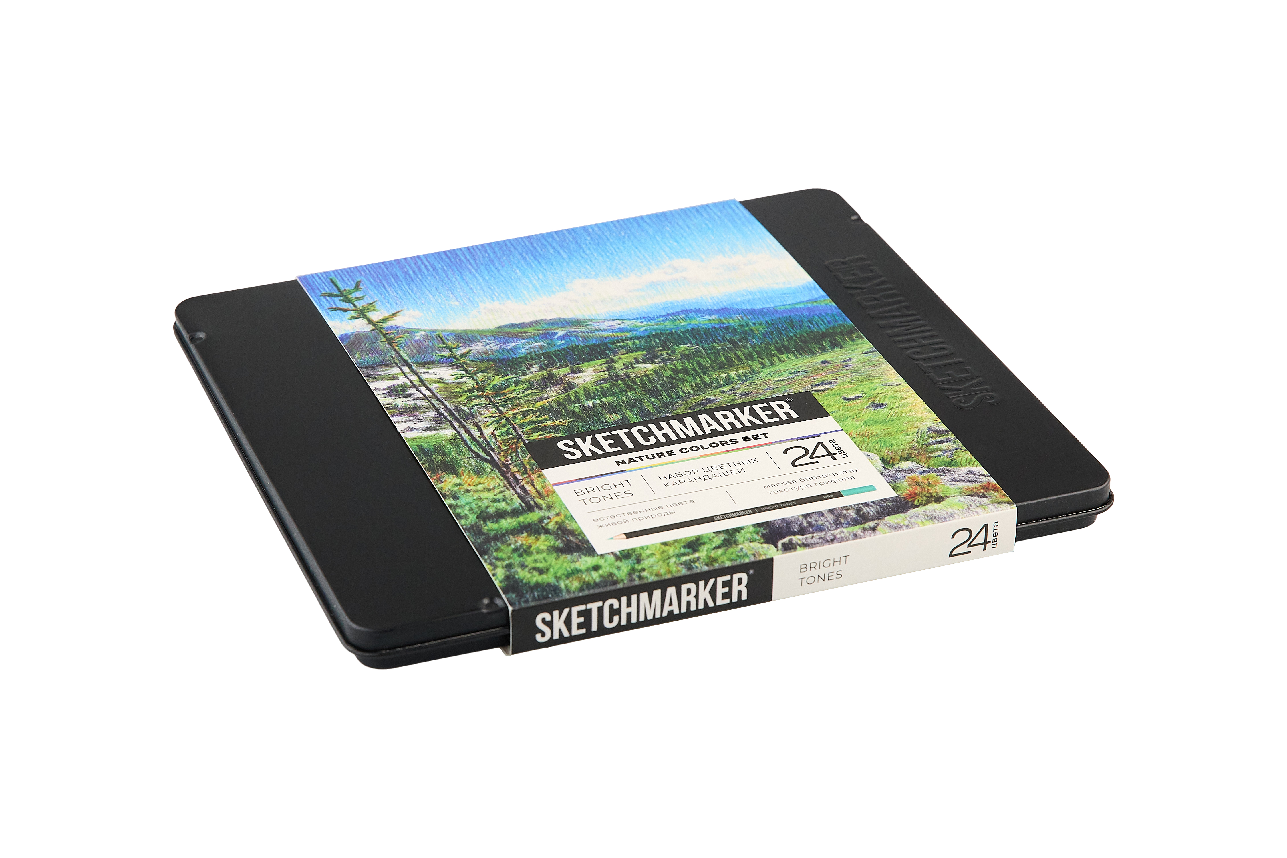 "Sketchmarker Bright Tones Nature Set – 24 натуральных цвета для рисования природы. Цветные карандаши созданы для ежедневного творчества и лёгких ярких зарисовок. Мягкое письмо и удобное нанесение позволяют комфортно раскрашивать и работать с цветом. Оттенки получаются яркими и выразительными, а плотное покрытие помогает легко заполнить цветом большие и малые участки рисунка. Карандаши хорошо наслаиваются друг на друга, позволяя смешивать тона и получать новые оттенки без сложных техник. Карандаши нужно затачивать ножом. Подходят для рисования в скетчбуках; раскрашивания антистресс-раскрасок; создания иллюстраций; создания открыток, плакатов, постеров; использования в коллажах и смешанных техниках; создания зарисовок на пленэре; эскизов и скетчей для дизайнеров, цветовых схем, fashion-скетчинга; концепт-арта; украшения писем и конвертов; оформления подарков; оформления ежедневников, планеров, трекеров. Это надёжный и понятный инструмент для всех, кто любит рисовать просто и с удовольствием. Корпус из липы и проклейка по всей длине. Длина карандаша - 17,5 см; диаметр карандаша - 7,6 мм; толщина грифеля - 4 мм. Грифель на масляной основе. Цвета в наборе: BR97 сиена жженая / burnt sienna +++; BR95 умбра коричневая / brown umber +++; BR91 умбра жженая / burnt umber +++; Y7 желтый / yellow +++; Y19 желто-золотой / golden yellow +++; O15 телесный / flesh +++; O94 оранжевый краплак / orange lake +++; R108 кармин / carmine ++; R11 красный / red +++; V12 фиолетовый / purple +++; B58 ультрамарин насыщенный / ultramarine deep +++; B35 синий сапфир / sapphire blue +++; B4 синий кобальт / cobalt blue +++; B84 синий краплак / blue lake +++; B28 синий океан / ocean blue +++; B30 зелёно-синий / blue green +++; G38 зелёный изумрудный / emerald green +++; G8 зелёный / green +++; G88 зелёный оливковый светлый / olive light +++; G44 желто-зелёный / yellowish green +++; G111 зелёный кедр / cedar green +++; G68 зелёный оливковый насыщенный / olive green deep +++; S6 черный / black +++; W1 белый / white +++"