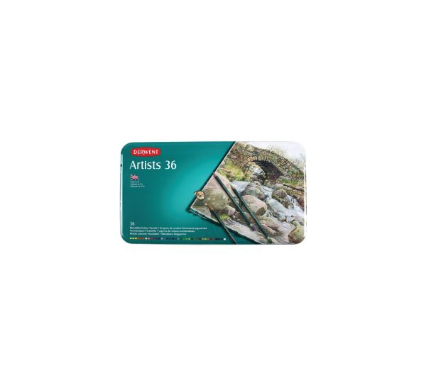 Карандаши Artists – традиционные цветные карандаши, которые были разработаны в 1930 году. Полная палитра Artists насчитывает 120 цветов. Благодаря слегка воскообразной текстуре карандашей все цвета можно смешивать между собой, создавая множество цветовых переходов и оттенков. Грифель вклеен в корпус с использованием специальных технологий и двойной проклейки, которые делают его устойчивым к излому. Корпус карандашей круглой формы, диаметр стержня 4 мм. Цвета в наборе: Lemon Cadmium, Straw Yellow, Deep Camium, Orange Chrome, Scarlet Lake, Deep Vermilion, Flesh Pink, Rose Pink, Crimson Lake, Magenta, Imperial Purple, Dark Violet, Light Violet, Blue Violet, Ultramarine, Spectrum Blue, Prussian Blue, Kingfisher Blue, Jade Green, Mineral Green, Emerald Green, Grass Green, May Green, Cedar Green, Olive Green, Bronze, Vandyke Brown, Brown Ochre, Raw Sienna, Golden Brown, copper Beech, Terracotta, Ivory Black, Blue Grey, Gunmetal and Chinese White. Карандаши цветные Artists выпускает компания Derwent («Дерв?нт»). Она образовалась в Великобритании в 1938 году и является дочерней компанией Cumberland Pencil Company, начавшей свое производство в 1832 году. Сегодня DERWENT – всемирно известный бренд, который выпускает товары и аксессуары для творчества художников.