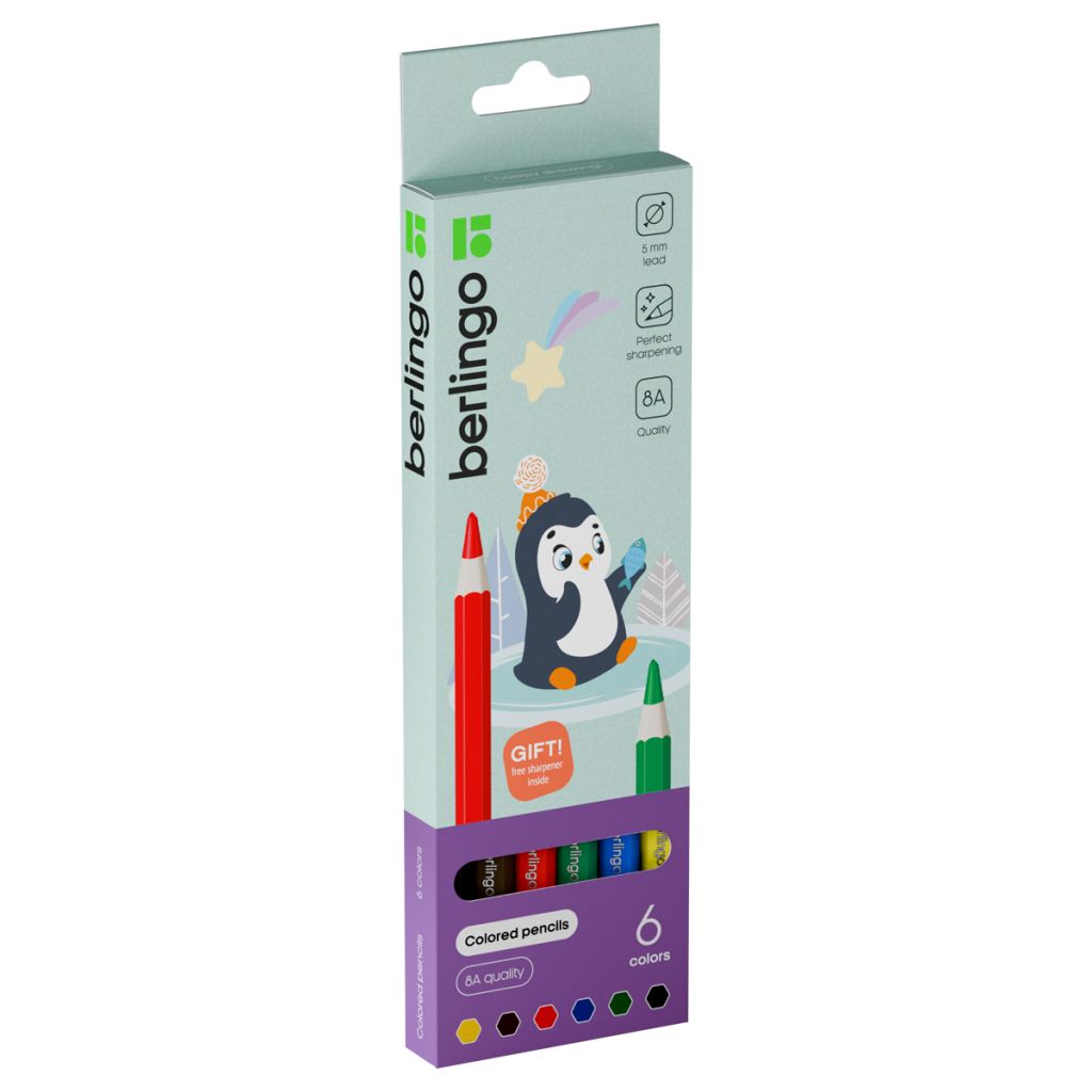 SuperSoft — линейка качественно новых цветных карандашей Berlingo. Набор из 6 цветов. Шестигранная утолщенная форма корпуса удобно ложится в руку ребенка. Указание цвета на каждом карандаше на английском языке. Поле для подписи имени владельца на каждом карандаше. Упаковка в плотную матовую картонную коробку со склеенным европодвесом. Грифели высочайшего стандарта качества 8А, являющегося максимальным для нехудожественных цветных карандашей. Мягкость письма, сравнимая с рисованием маслом и пастелью. Яркие насыщенные цвета, обладающие превосходной смешиваемостью. Увеличенная до 5 мм толщина грифеля для безупречно комфортного раскрашивания. Уникальная формула и технология производства грифелей, в результате которой достигается одновременно удивительная мягкость письма и прочность, позволяющая грифелю выдерживать даже сильное нажатие под углом 45 градусов. Специальная проклейка, предотвращающая поломку грифеля внутри карандаша при падении. Стойкость к повреждениям. Корпус из древесины высшего качества, прошедшей тщательную обработку. Материал, сохраняющий свою прочность и легко поддающийся ровной заточке без усилий. Уникальная антибактериальная обработка на специализированном оборудовании, гарантирующая безопасное использование продукции детьми.
