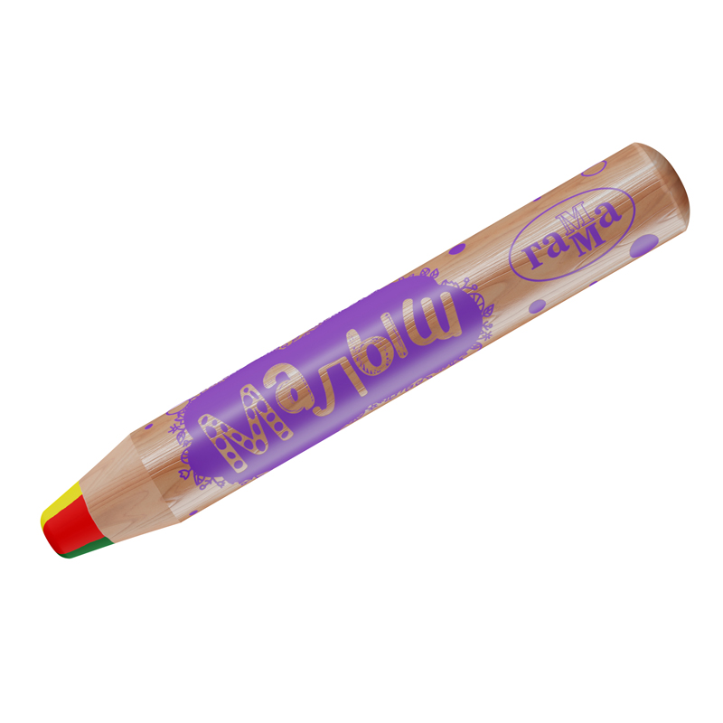 Карандаш «ГАММА» серии «Малыш» содержит в себе сразу 4 цвета. Утолщённый корпус разработан специально для маленькой ладошки и удобно ложится в руку юного художника. Линия на бумаге меняет цвет в процессе рисования и раскрашивания, что позволяет получать совершенно неожиданные и каждый раз новые рисунки. Изделие обладает свойствами цветного карандаша, воскового мелка и акварельных красок. Благодаря этому грифель мягко скользит по разным поверхностям: бумаге, асфальту, стеклу, металлу.