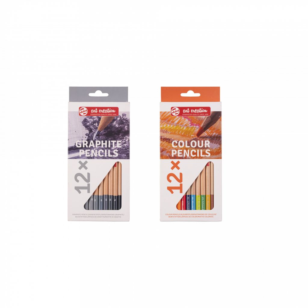 Чернографитные карандаши Art Creation предназначены для школьников, студентов и начинающих художников. Карандаши подходят для скетчинга, рисования, черчения и записей. Диапазон твердости чернографитных карандашей данной серии от 2Н до 9В. Мягкие карандаши твердостью от НВ имеют различную насыщенность цвета. Корпус карандаша проклеен по всей длине, что обеспечивает высокую устойчивость карандашей к излому. Цветные карандаши Art Creation предназначены для начинающих художников, учеников, студентов и любителей рисования. Карандаши подходят как для первых шагов в творчестве, так и для улучшения навыков, благодаря сочетанию качества и доступности. Высокое содержание пигмента обеспечивает превосходную цветопередачу, яркие и насыщенные цвета. Светостойкость обеспечивает сохранность работ в течение длительного времени. Корпус карандаша проклеен по всей длине, что обеспечивает высокую устойчивость карандашей к излому. Линейка представлена наборами различной комплектации. Производство: производится в городе Апелдорн голландской компанией «ROYAL TALENS», которую основал. Мартин Таленс (Marten Talens) в 1899 году. «ROYAL TALENS» производит все виды художественных красок и является одним из ведущих производителей в своей отрасли.