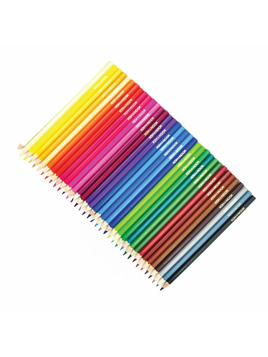Набор карандашей 36 цветов шестигранной формы 2,8 мм. Применение: для художественных и графических работ. Подходит для художников всех уровней. Производство: изготавливаются компанией KOH-I-NOOR HARDTMUTH, которая является самым известным чешским производителем принадлежностей для рисования, канцелярских товаров и товаров для творчества. Компания получила название в честь алмаза «Кохинор» и была основана в 1790 году.