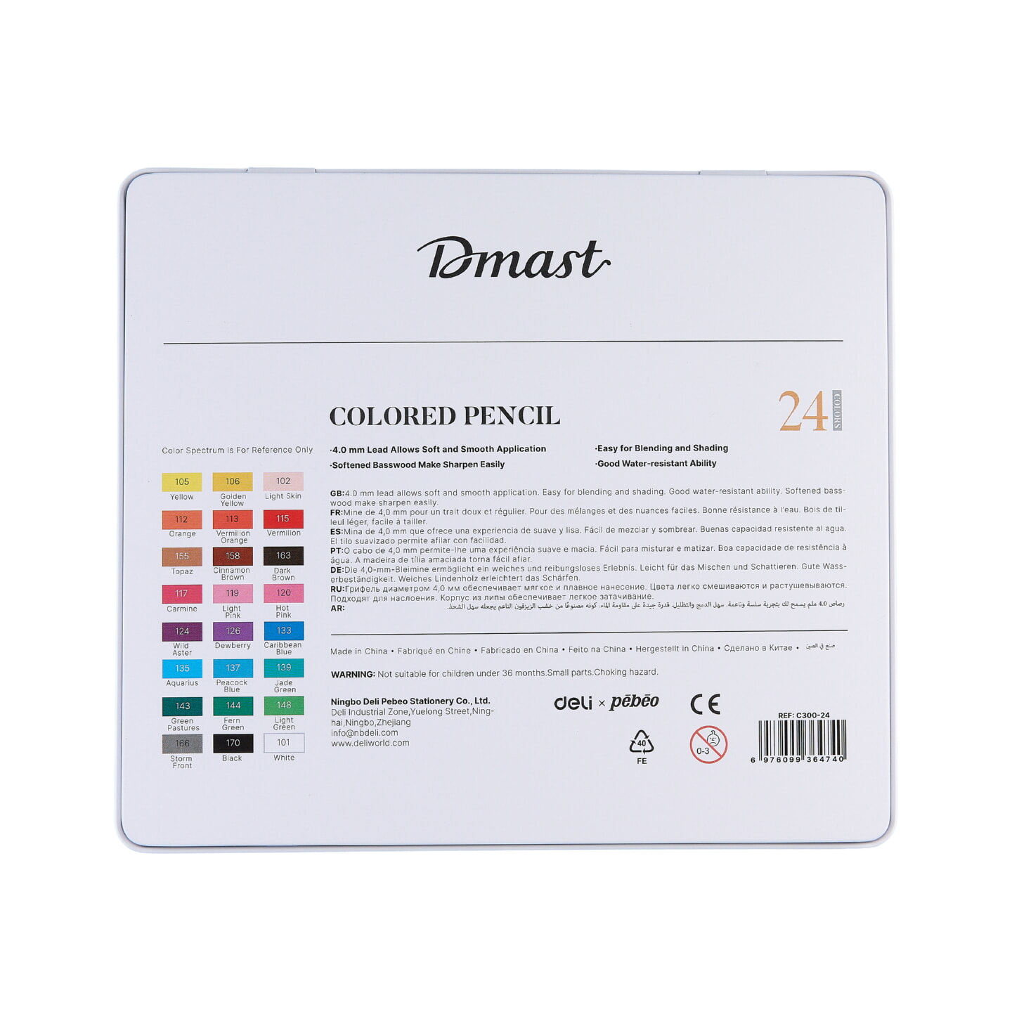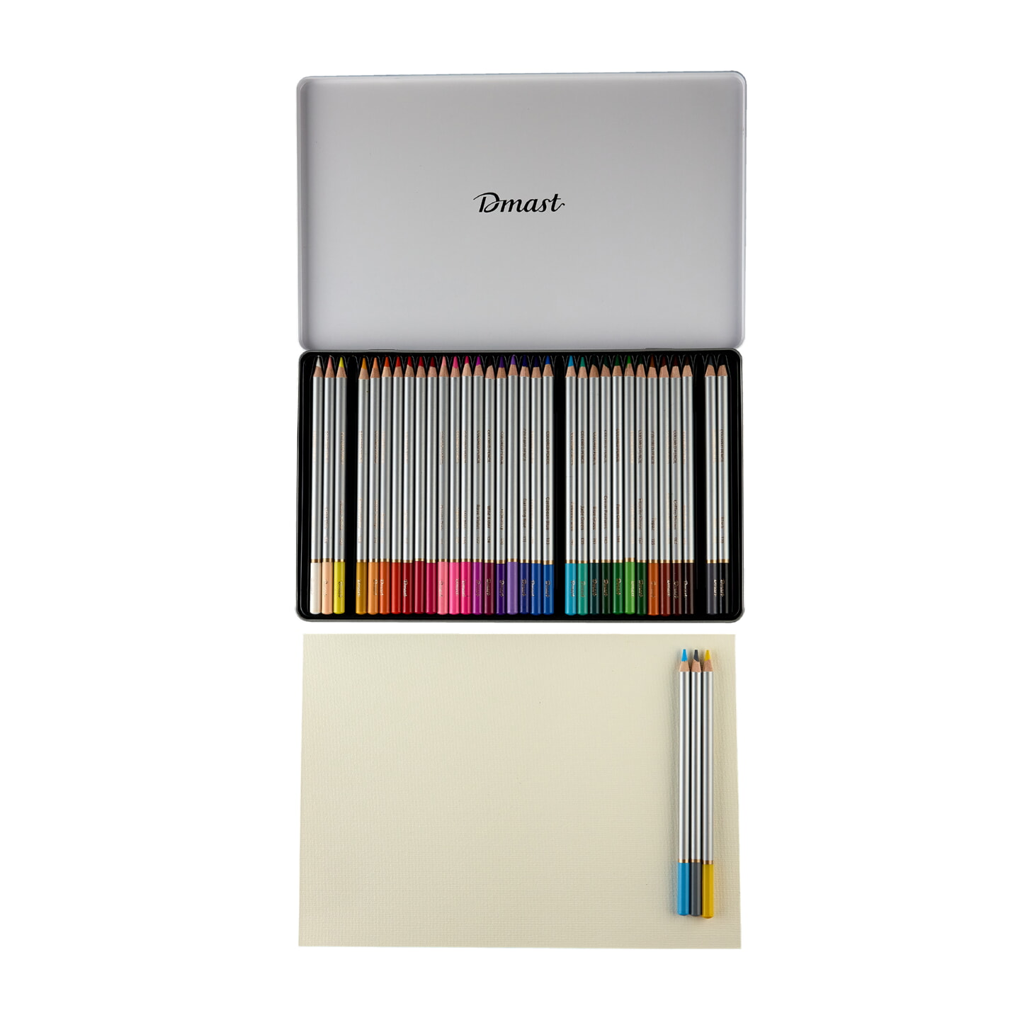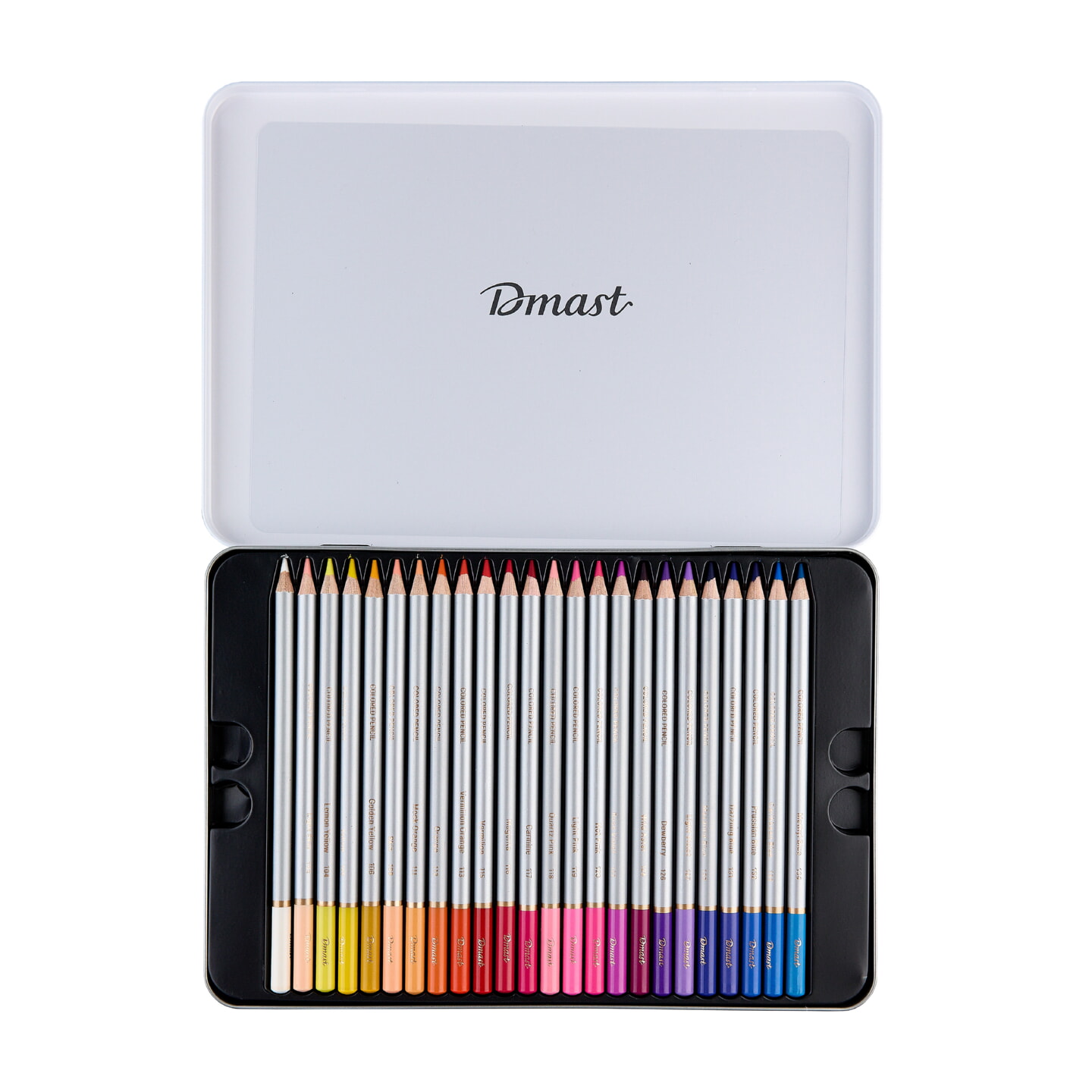 Цветные карандаши Dmast произведены из высококачественных светостойких пигментов. Текстура грифеля обеспечивает мягкое нанесение на бумагу, но при этом долго сохраняет остроту заточки. Цвета отлично смешиваются и наслаиваются. Карандаши Dmast подходят для жанров, требующих использование многослойных техник. Корпус из липы гарантирует лёгкую заточку. Наборы поставляются в фирменных металлических пеналах и послужат отличным подарком художнику любого уровня мастерства.